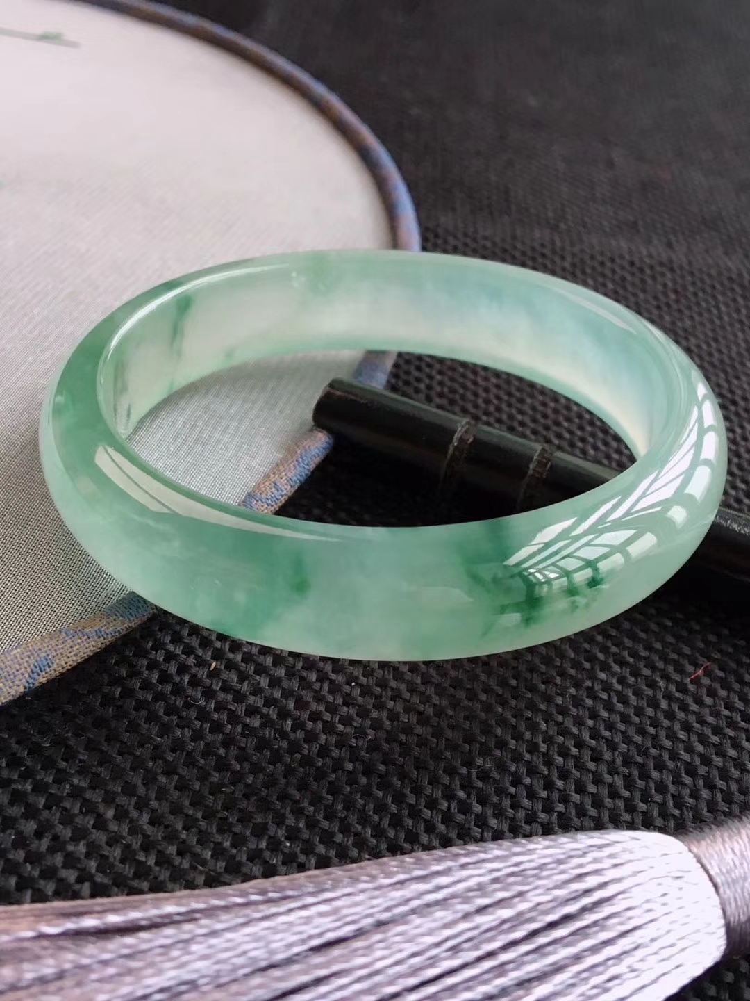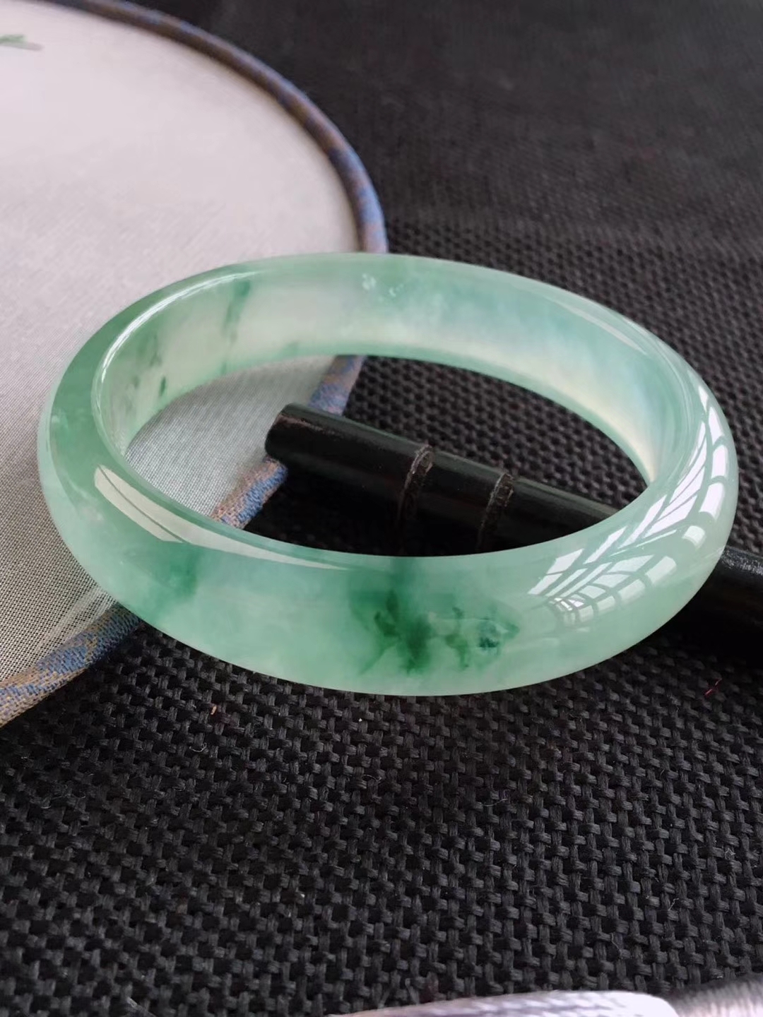 完美無紋裂,水潤通透起熒光,花色靈動,玉質細膩,膠感十足,種水足,玉質溫潤,質地水潤,上手好看佩戴高檔
