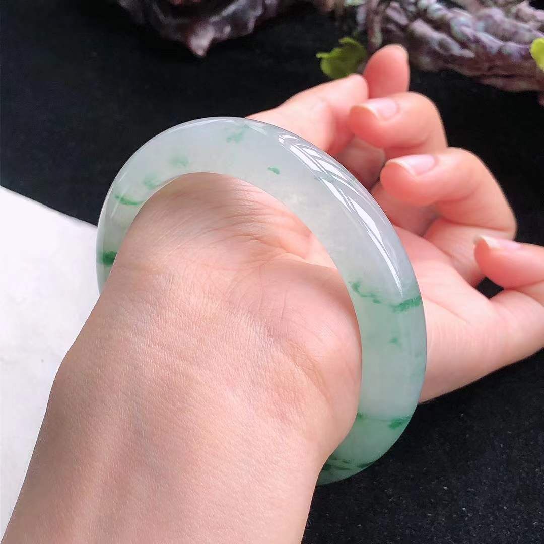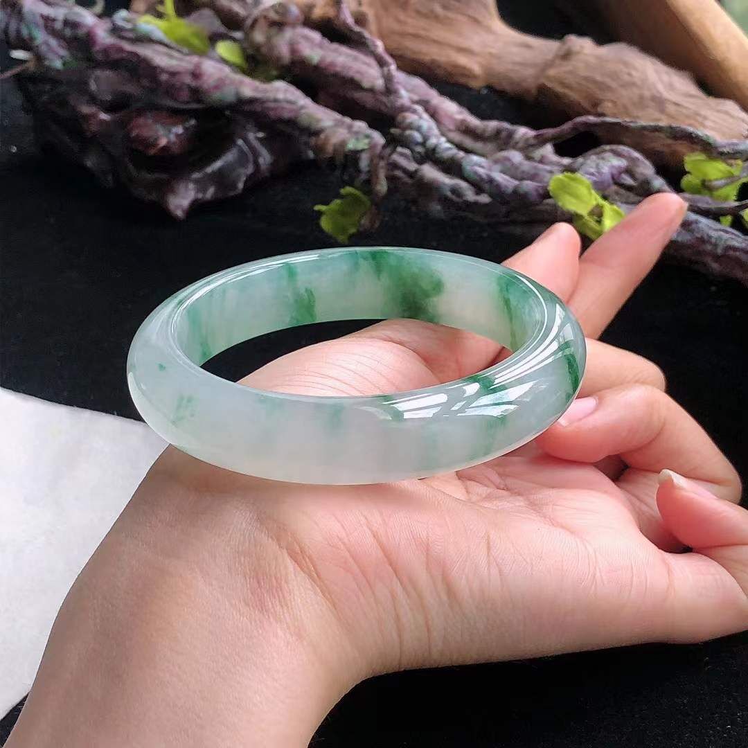 • 冰飄綠花翡翠正圈手鐲,天然翡翠A玉, 緬甸玉, Jade, Jadeite