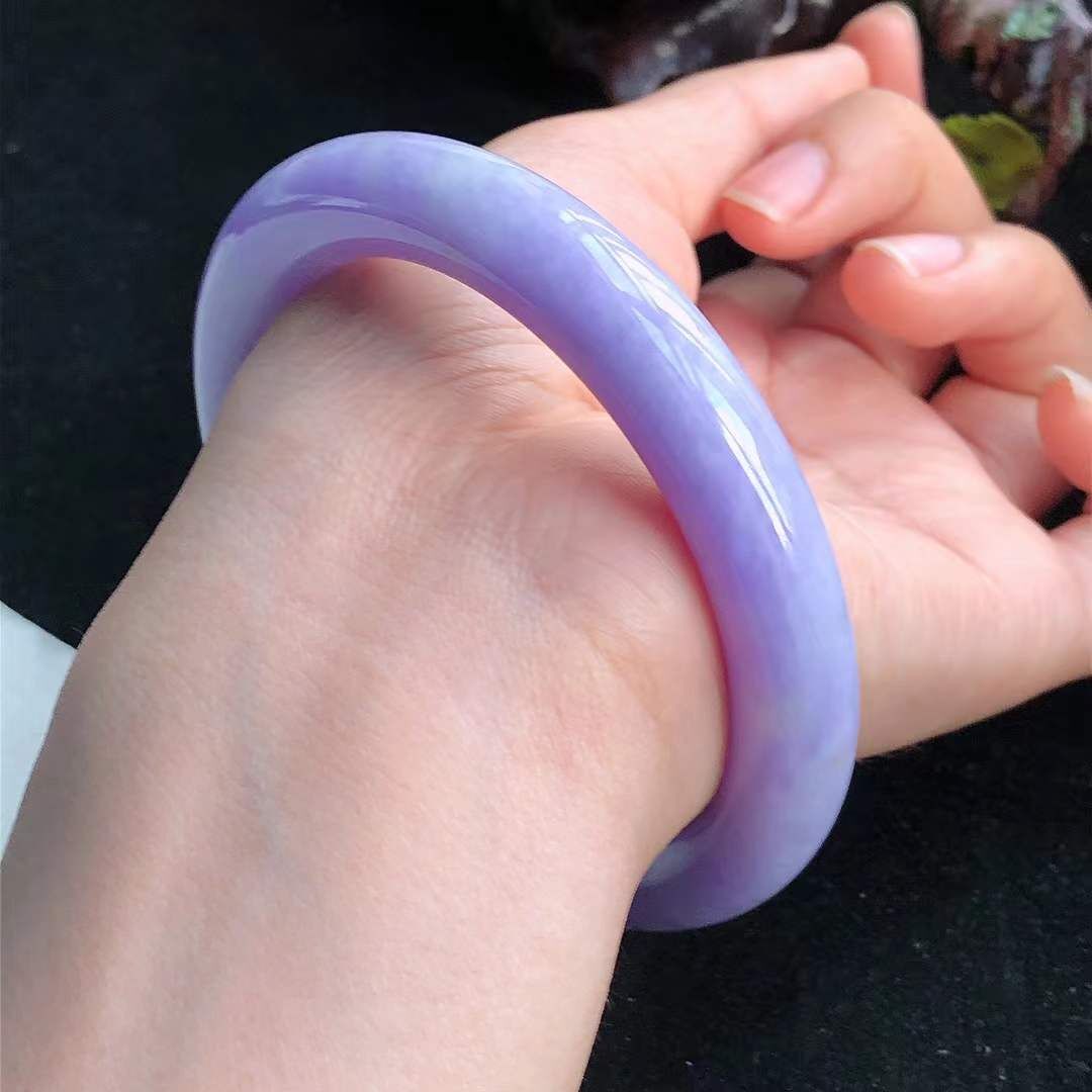 • 冰糯紫羅蘭翡翠圓條手鐲,天然翡翠A玉, 緬甸玉, Jade, Jadeite