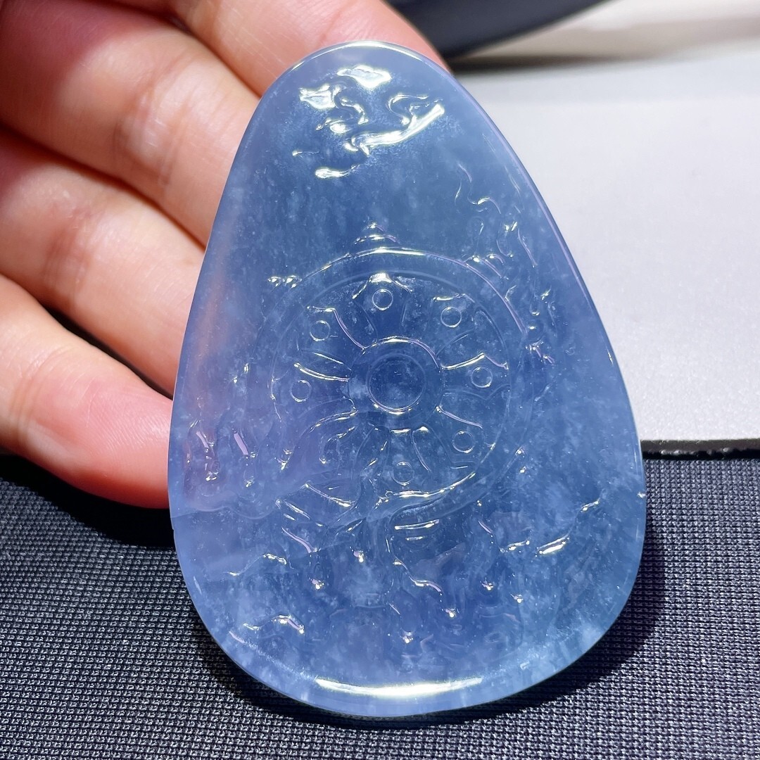 天然翡翠A玉,緬料,老坑冰糯種紫羅蘭,料子細膩,精雕工,種水好。