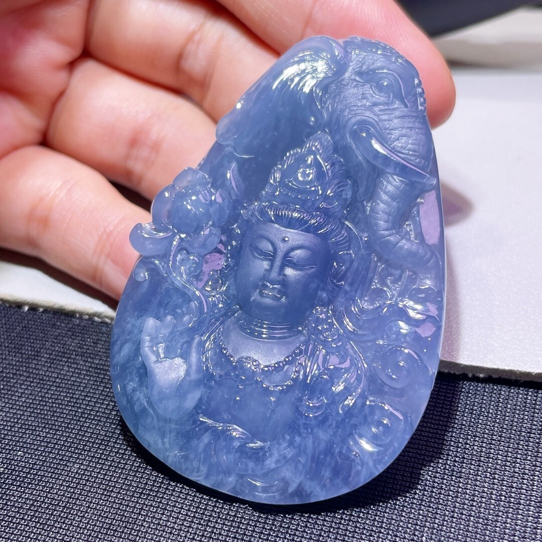 • 翡翠普賢菩薩吊墜,天然翡翠A玉, 緬甸玉, Jade, Jadeite