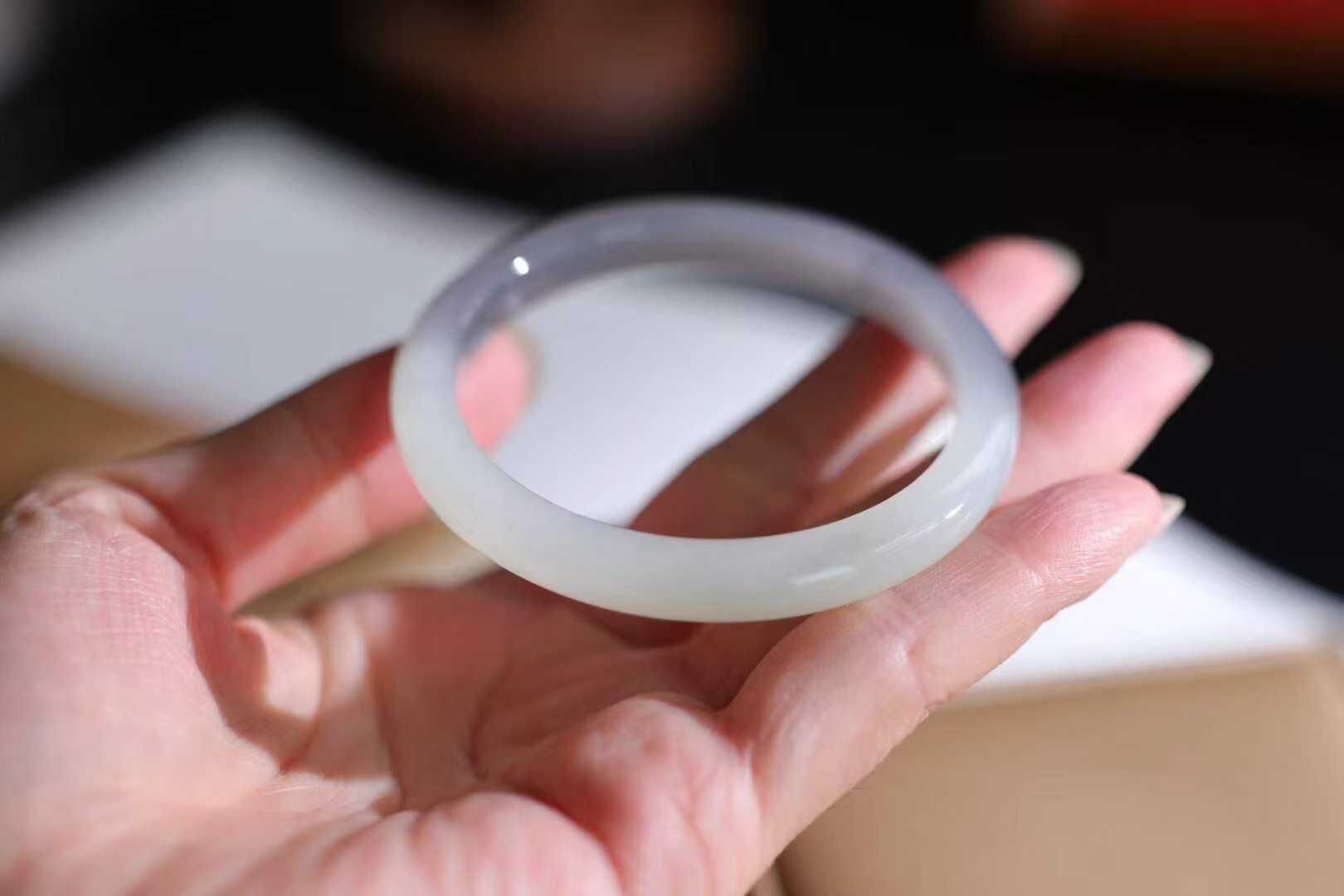 思來江山外,望盡煙雲生,和田玉白玉煙紫雙色半山水手鐲,玉質油潤細膩,顏色溫柔。