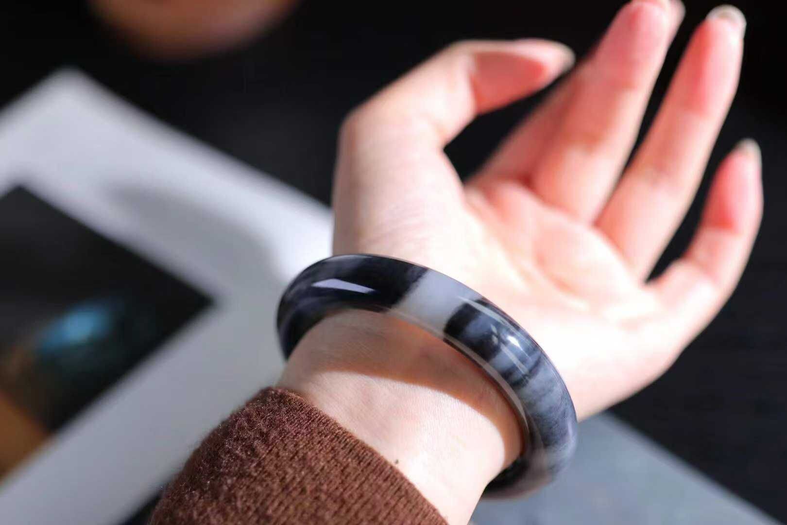 和田玉青花籽料,江山如畫,水墨玉韻繞腕間青花籽料手鐲,宛若一幅精緻水墨畫,玉質細膩溫潤。山川河流,於方寸之間流淌,盡顯自然之美。