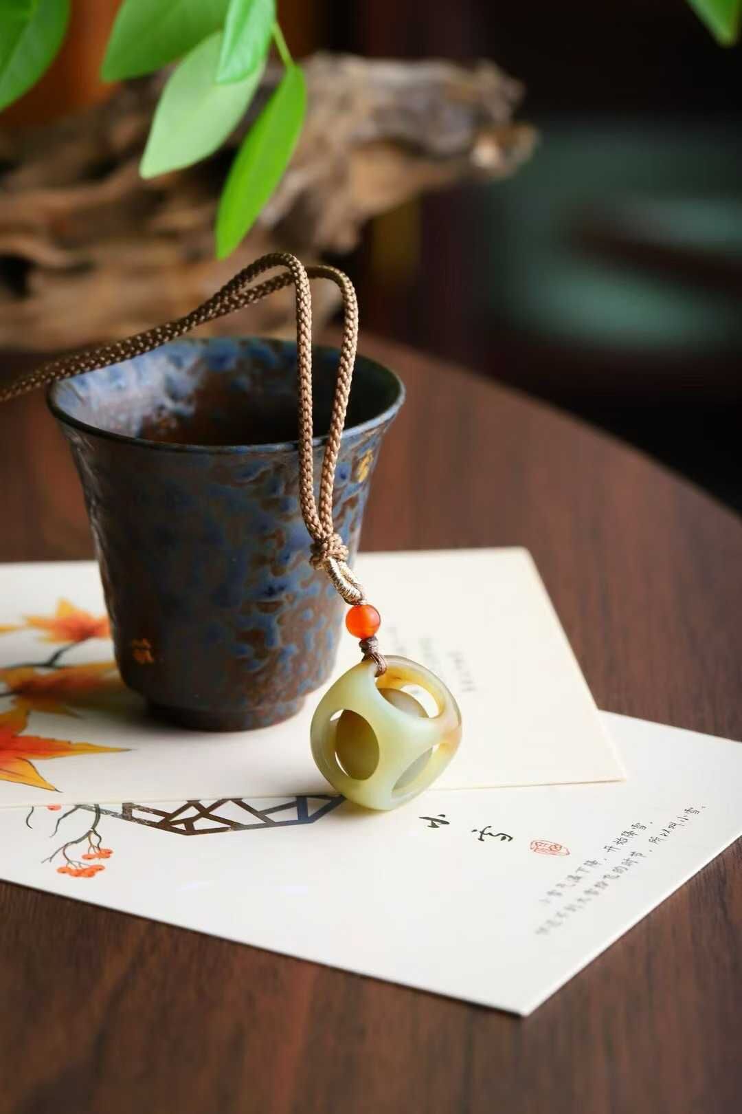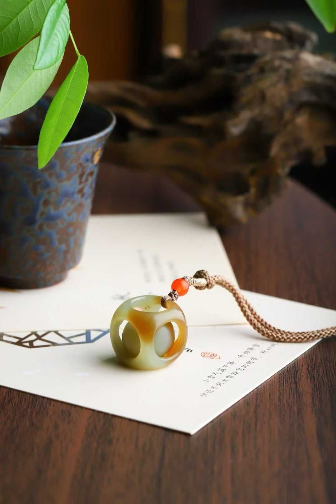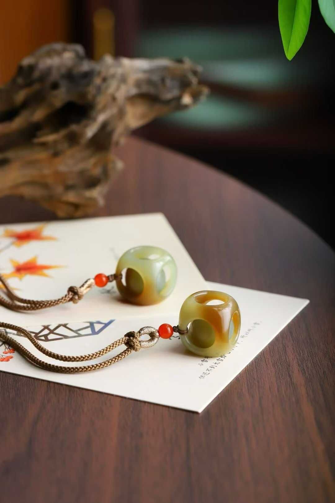 • 和田玉糖色路路通/轉運珠,天然和田玉軟玉