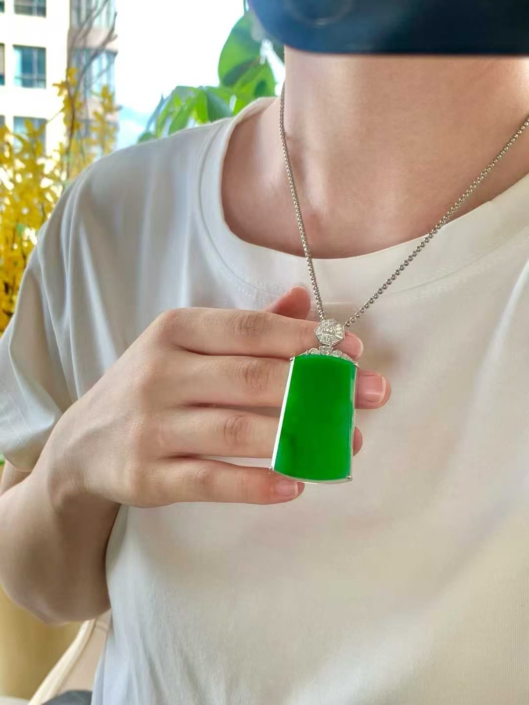 • 翡翠無事牌吊墜,天然翡翠A玉, 緬甸玉, Jade, Jadeite
