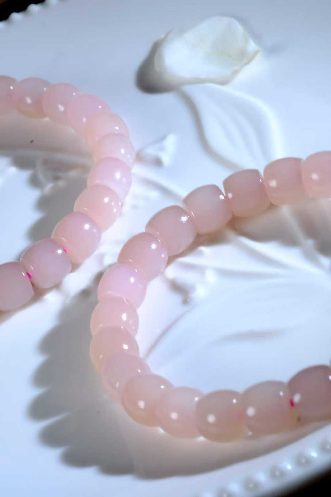 粉黛*串,和田玉粉紫,粉中又微微透些紫,和田玉中極為夢幻特殊的一個色彩,給人以溫馨,細膩,帶著淡淡的甜蜜的期待~顆顆甄選,粒粒完美,均勻一致老型珠手鏈,靈氣逼人,佩戴溫婉。