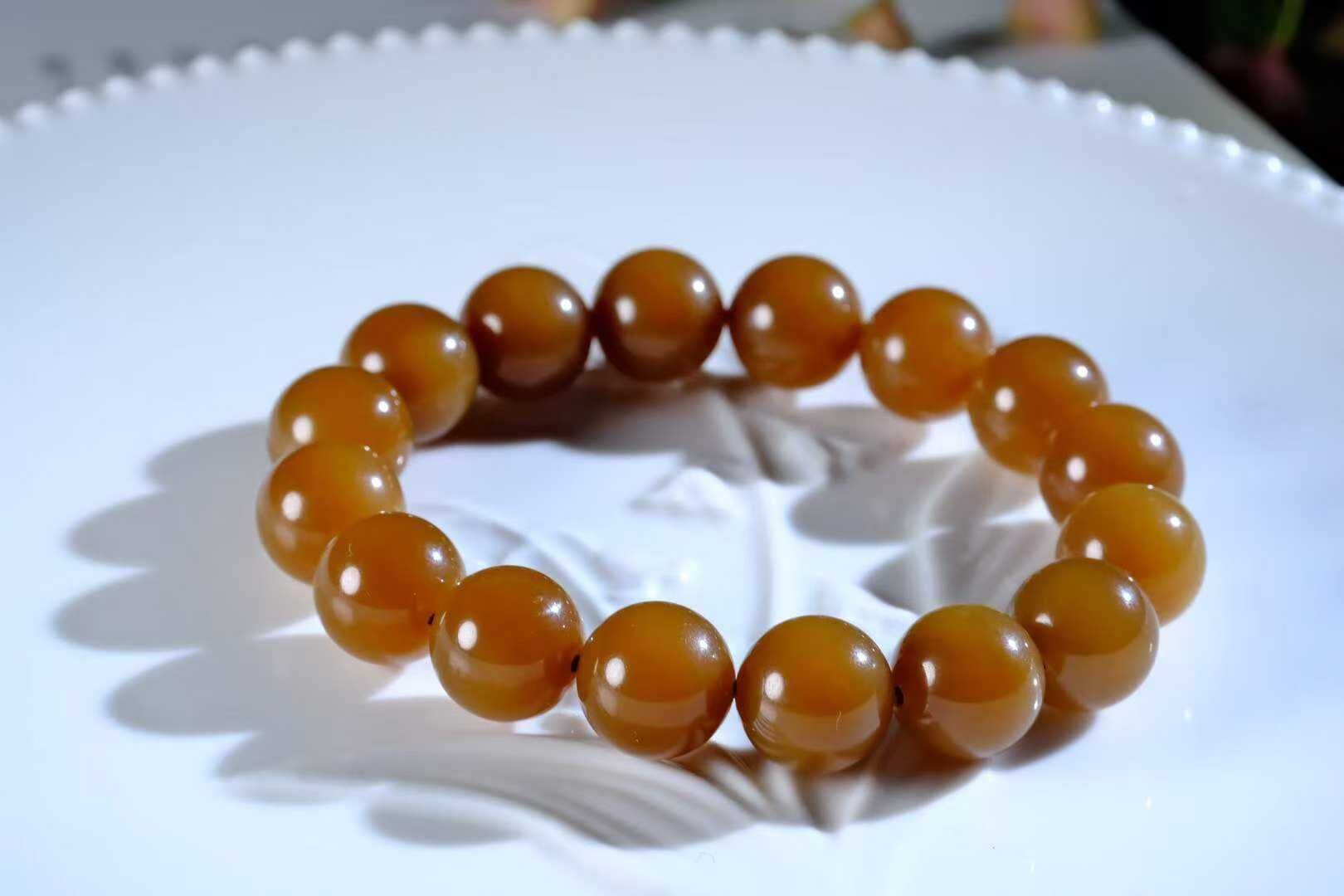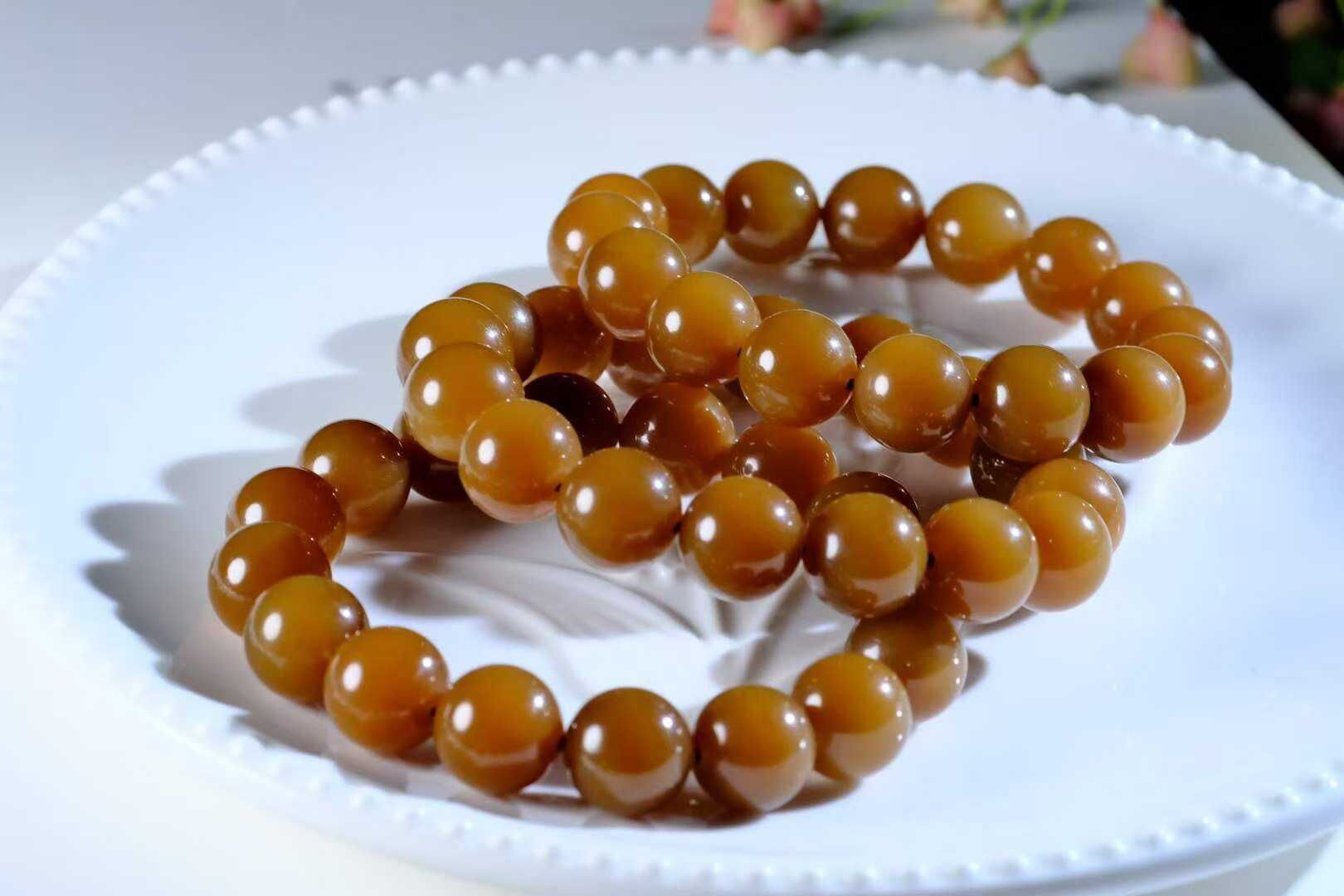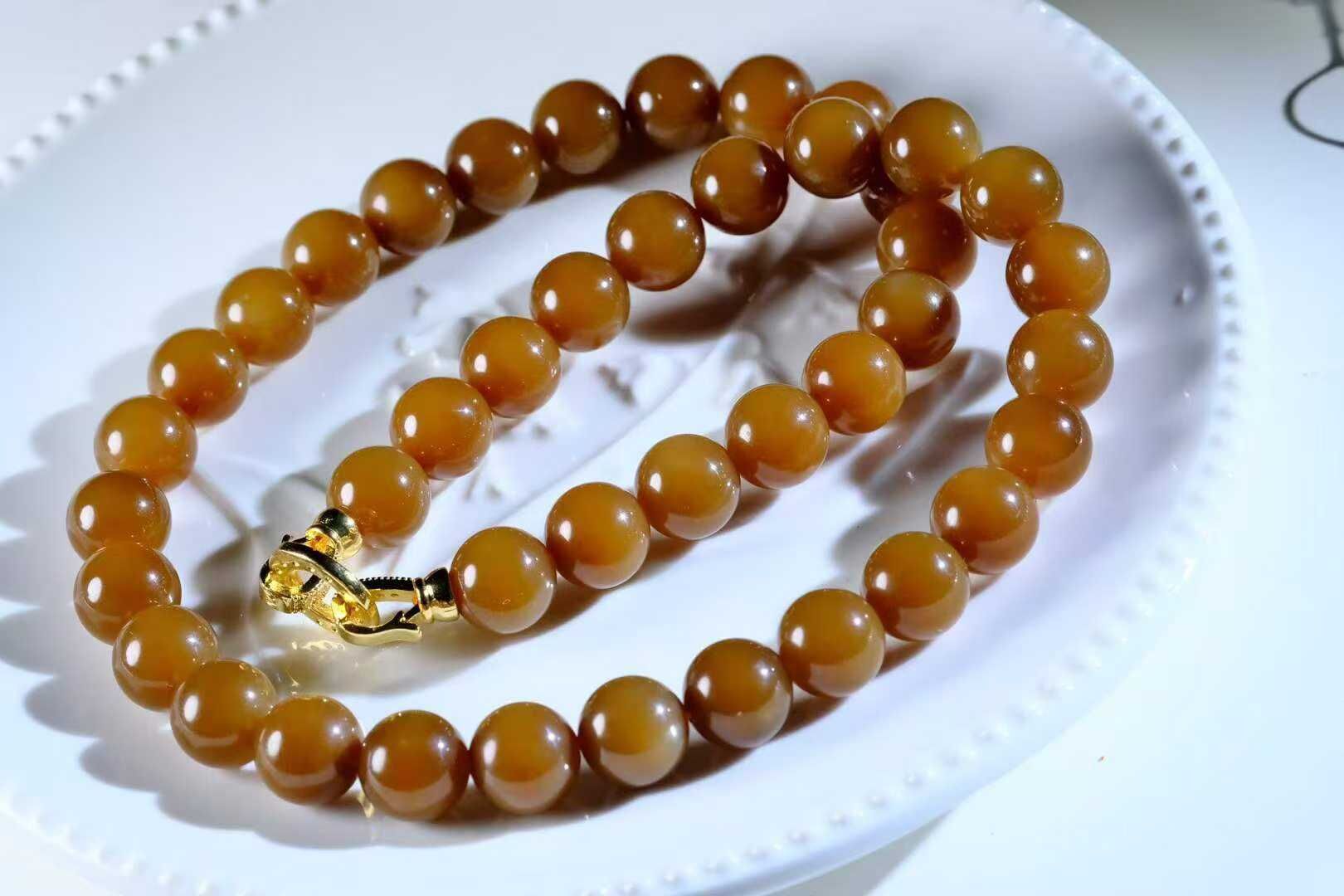 • 和田玉紅糖項鏈/手鏈 (12mm直徑),天然和田玉軟玉