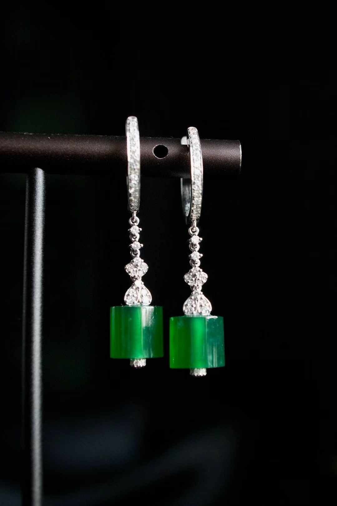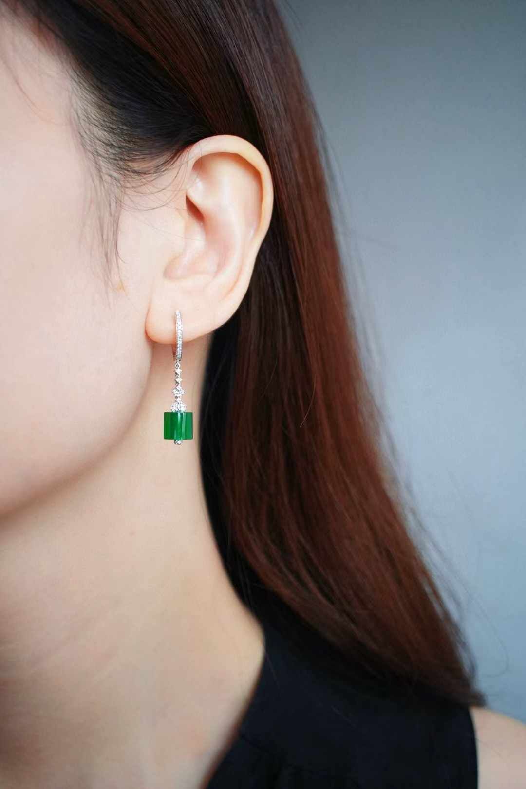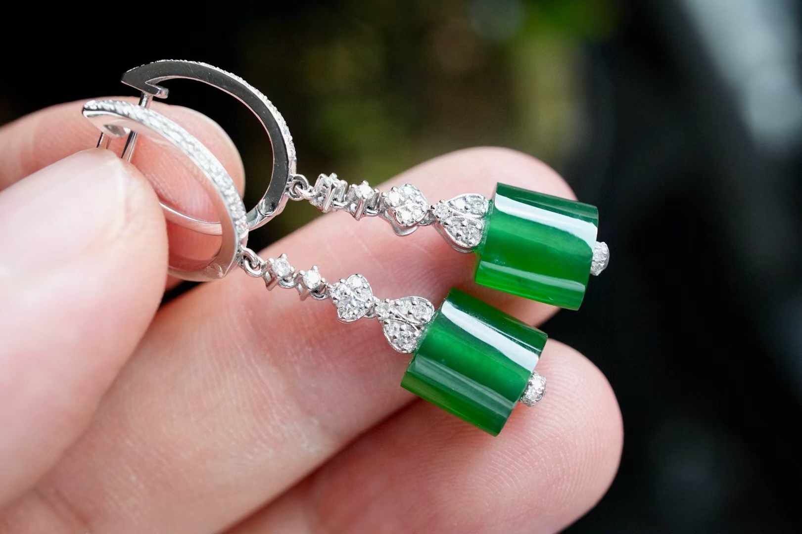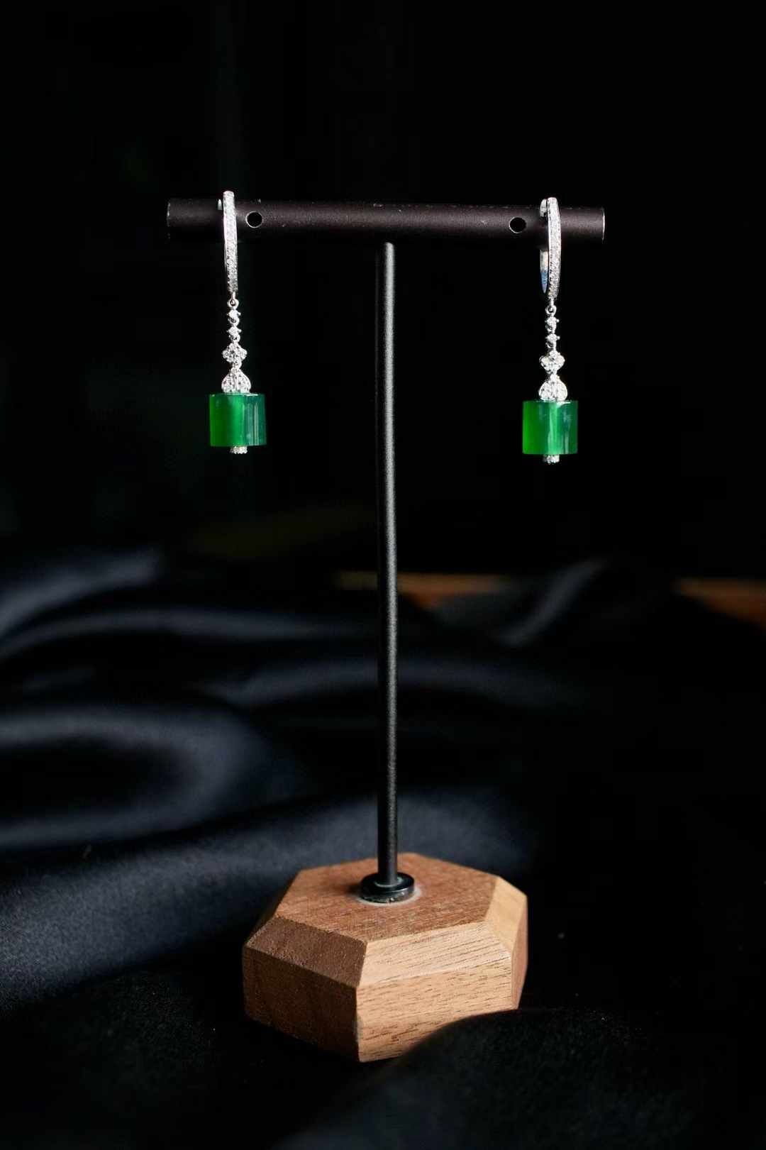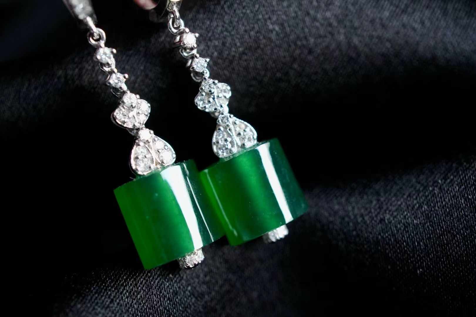 天然翡翠A玉,乾淨利落的翡翠耳墜。“大道至簡”,在翡翠中更是體現的淋漓盡致。高品質翡翠扁珠,高冰辣陽綠,翠意盎然。18K金鑽石鑲嵌,簡單,卻很醒目。