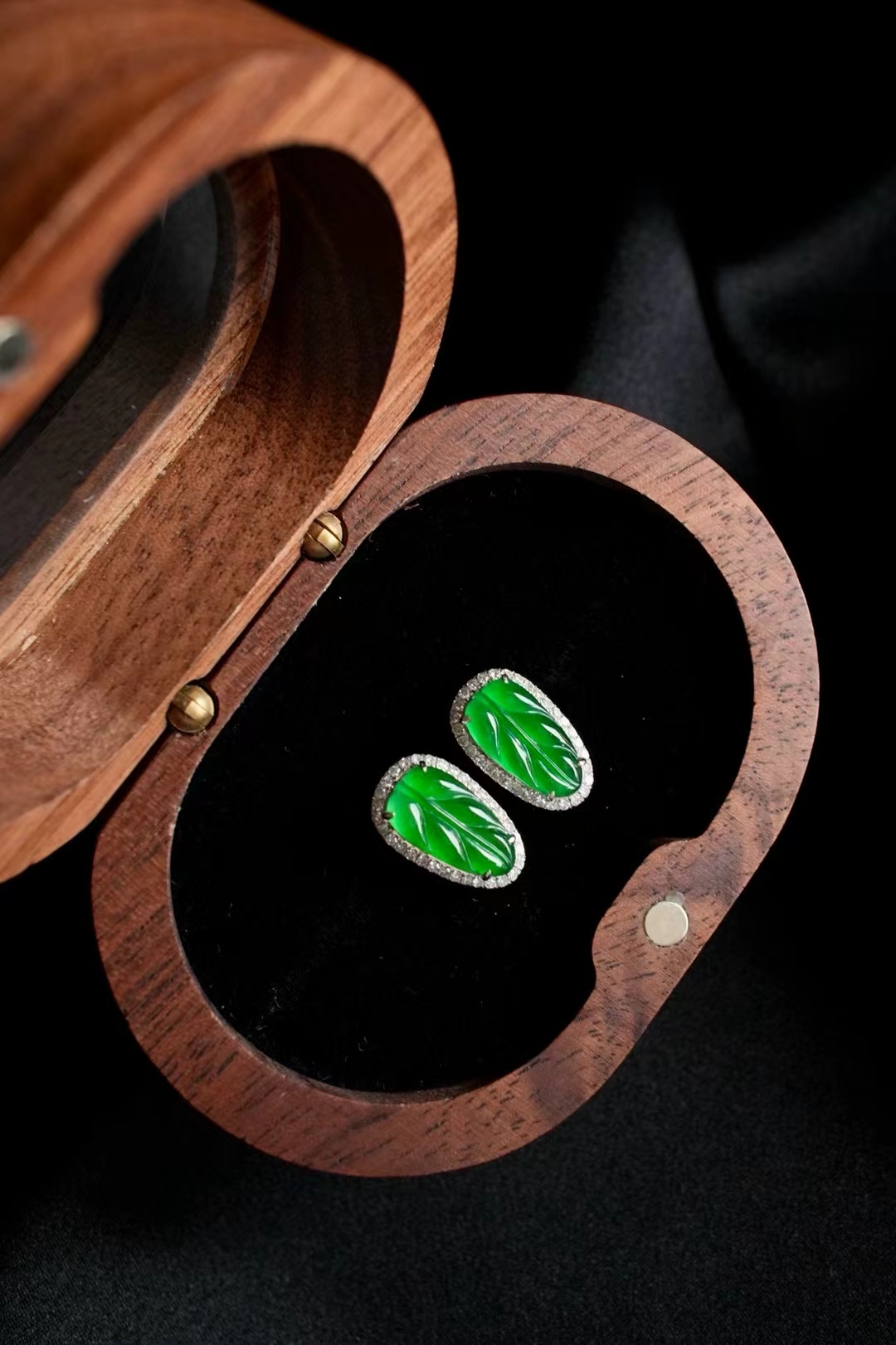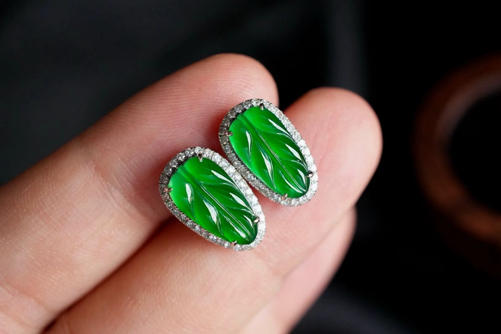 天然翡翠A玉,葉子呈陽綠色,飽滿透亮,綠色給人富有生機活力的感覺,清爽愉悅,種水色俱佳,18K金滿鑽鑲嵌,精緻貴氣,金枝玉葉的即視感,優雅大方。