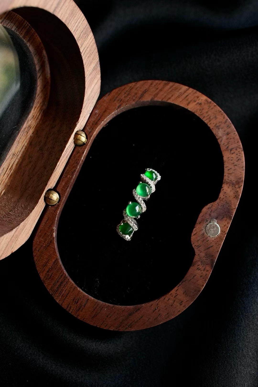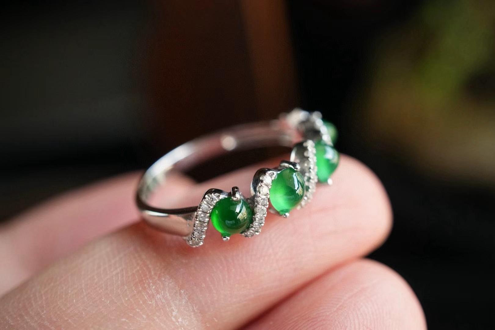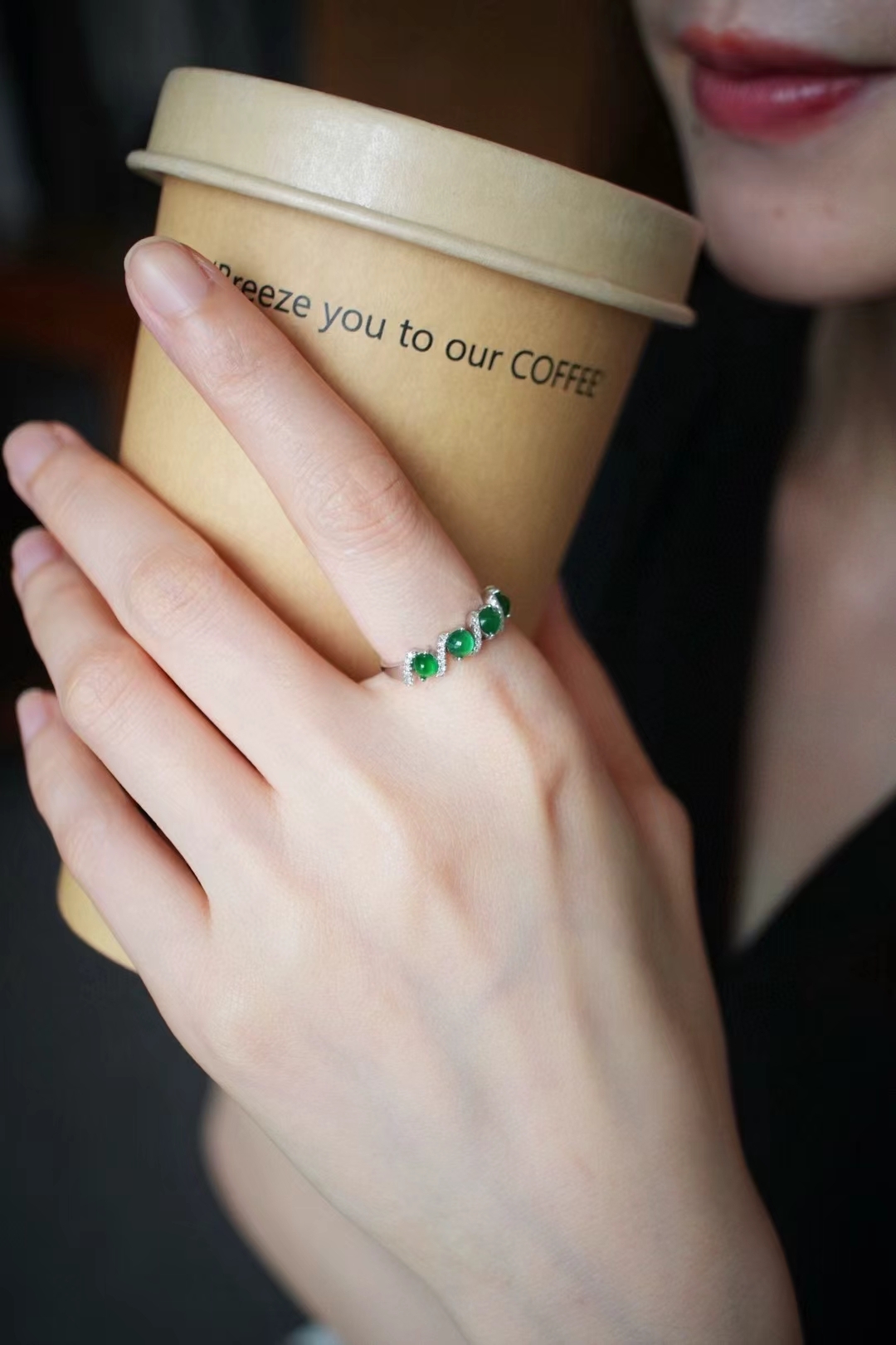 設計款冰種陽綠翡翠排戒,天然翡翠A玉,冰種陽綠蛋面排戒,18K金精工厚金,質感滿滿,點綴足反鑽石,上手精緻感十足,時髦。