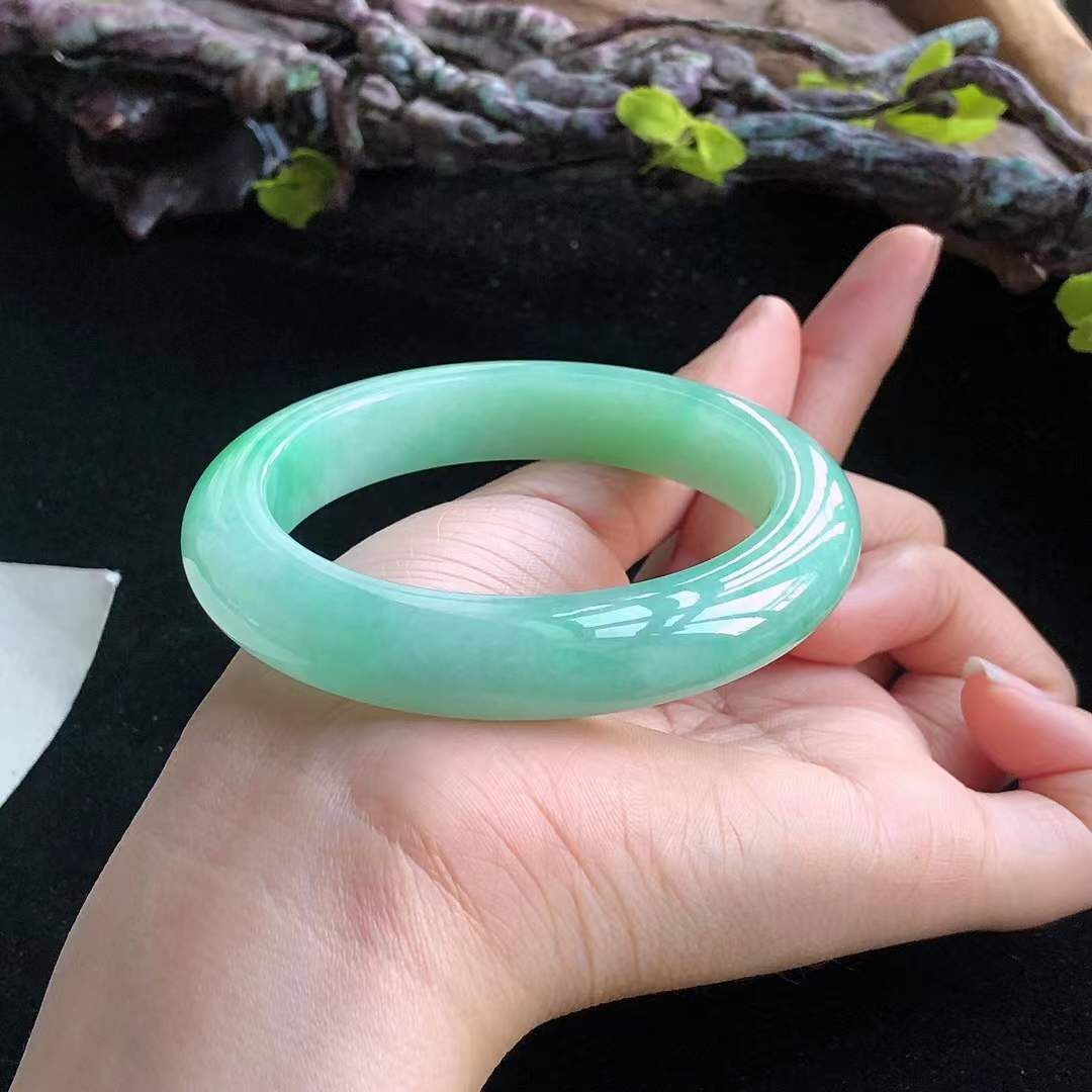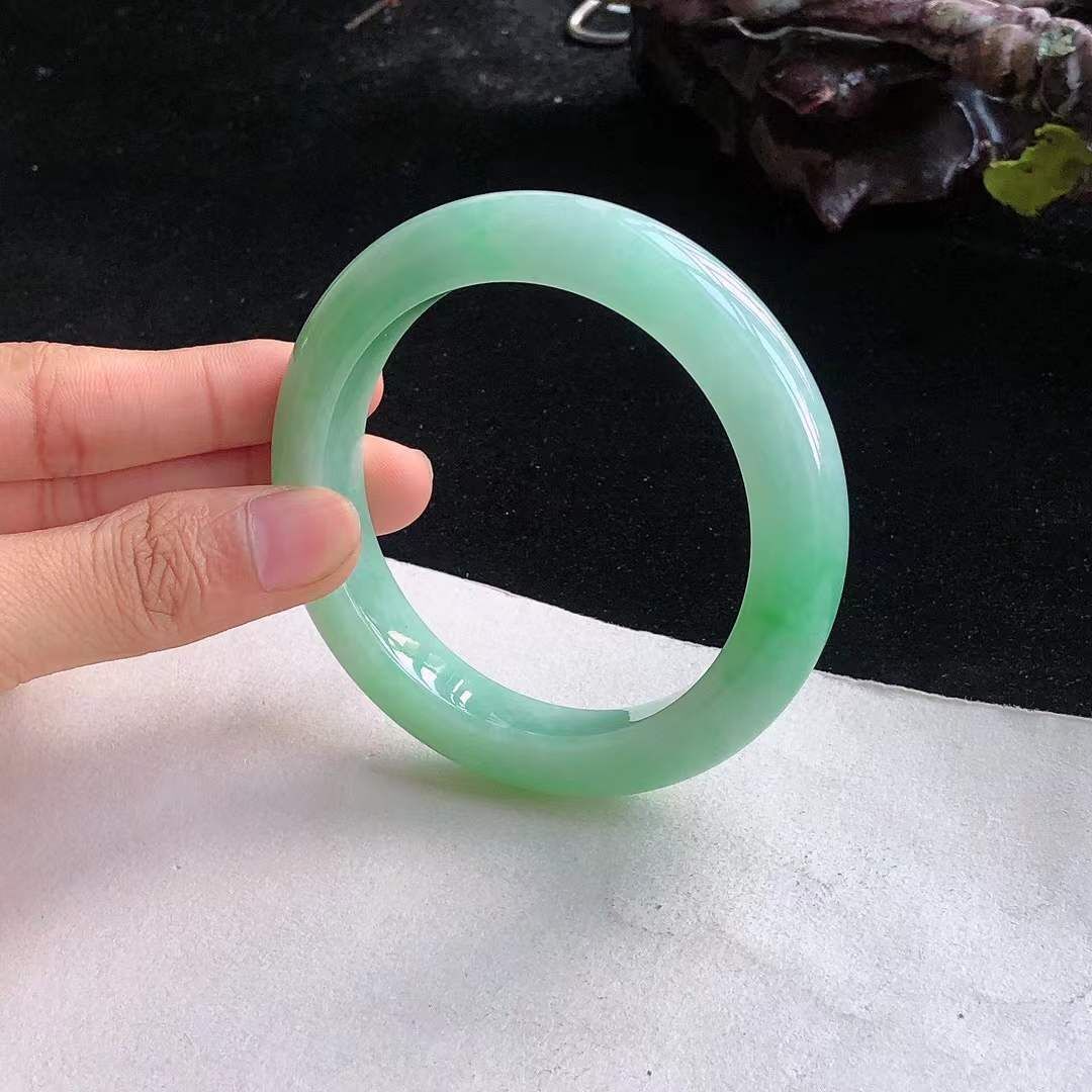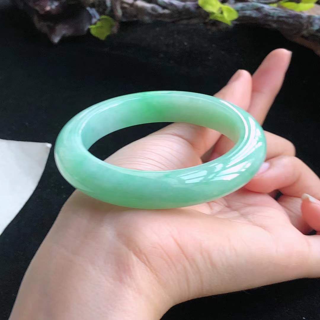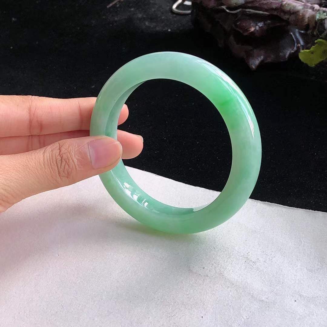 10152610 54.2mm冰糯飄陽綠翡翠正圈手鐲
