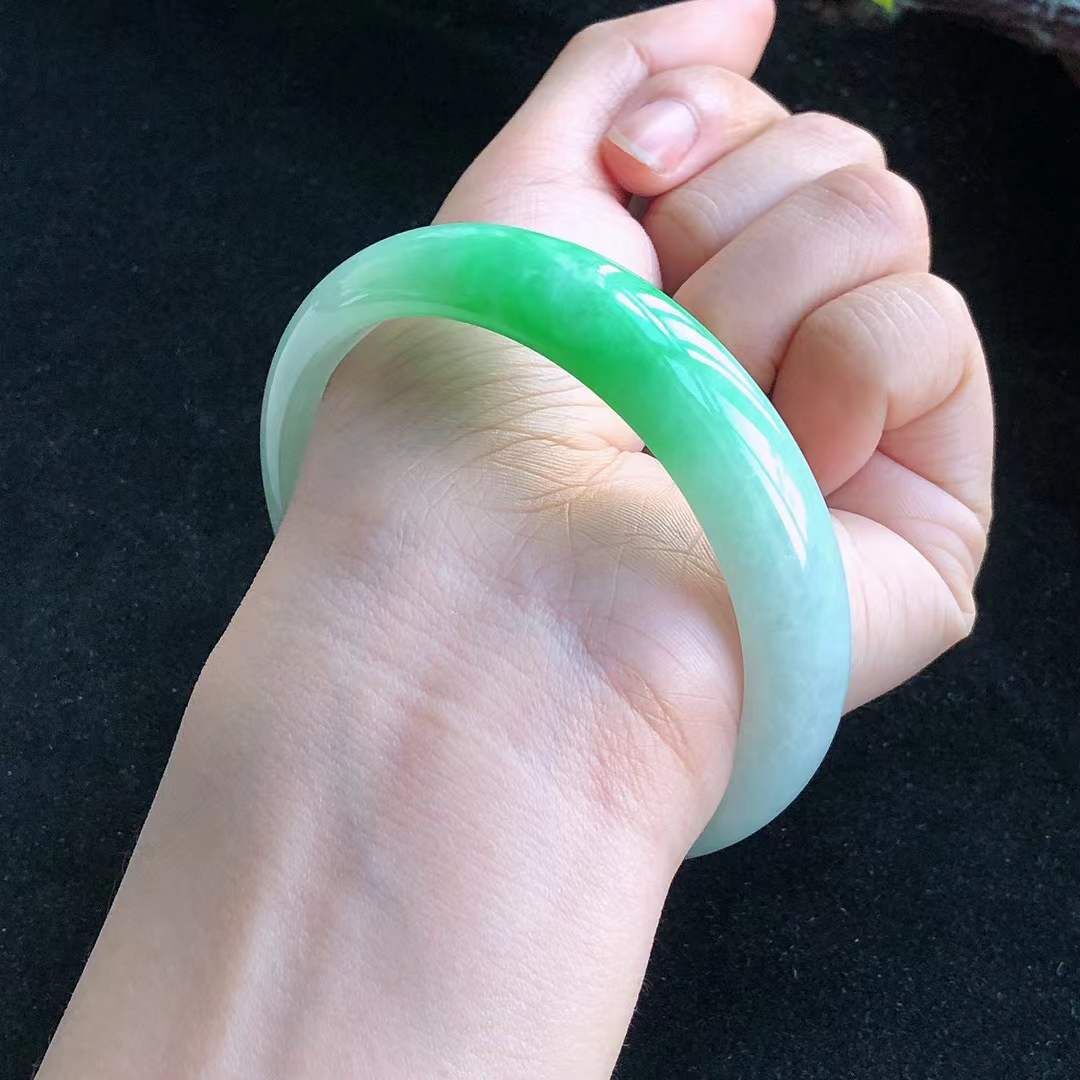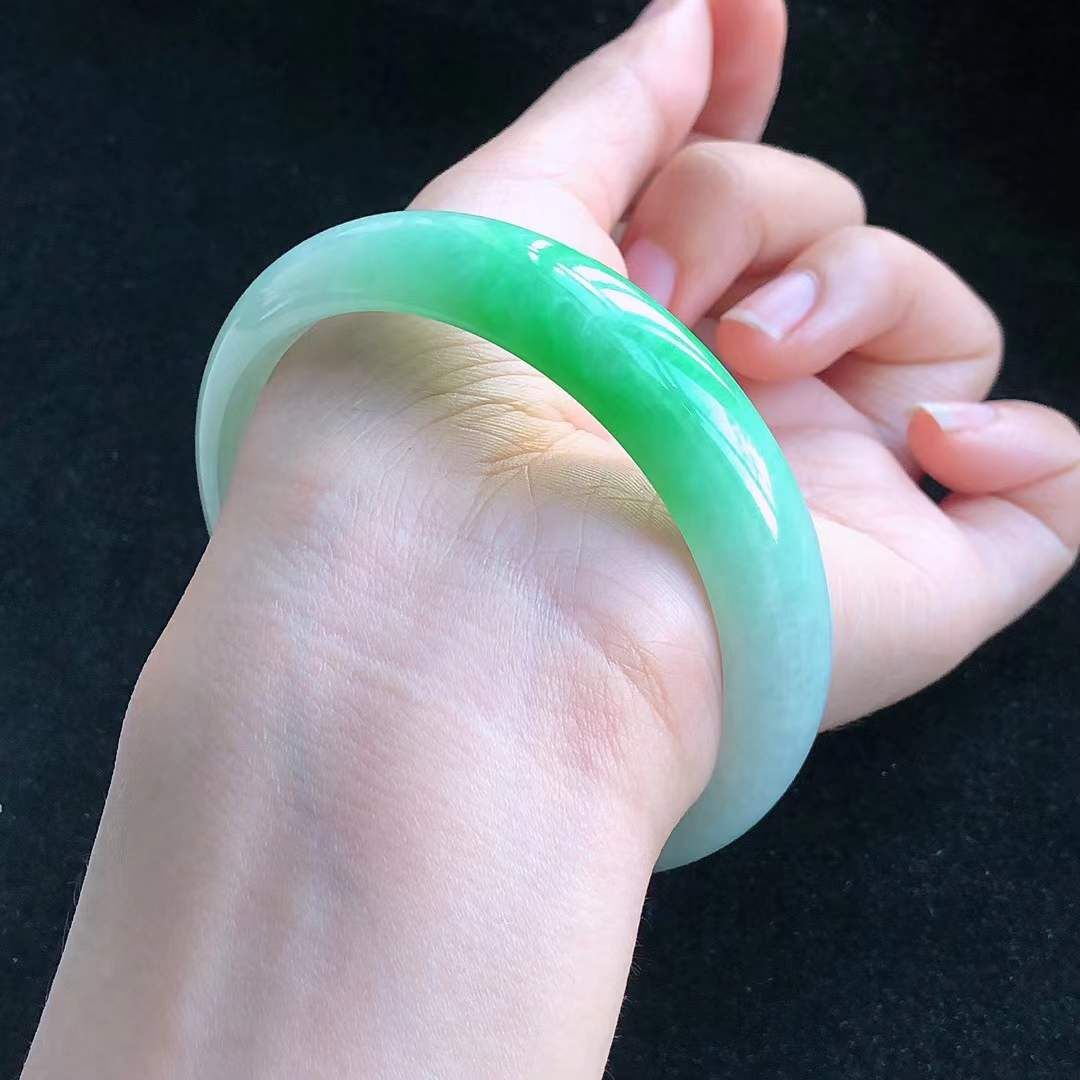 • 冰糯飄陽綠翡翠正圈手鐲,天然翡翠A玉, 緬甸玉, Jade, Jadeite