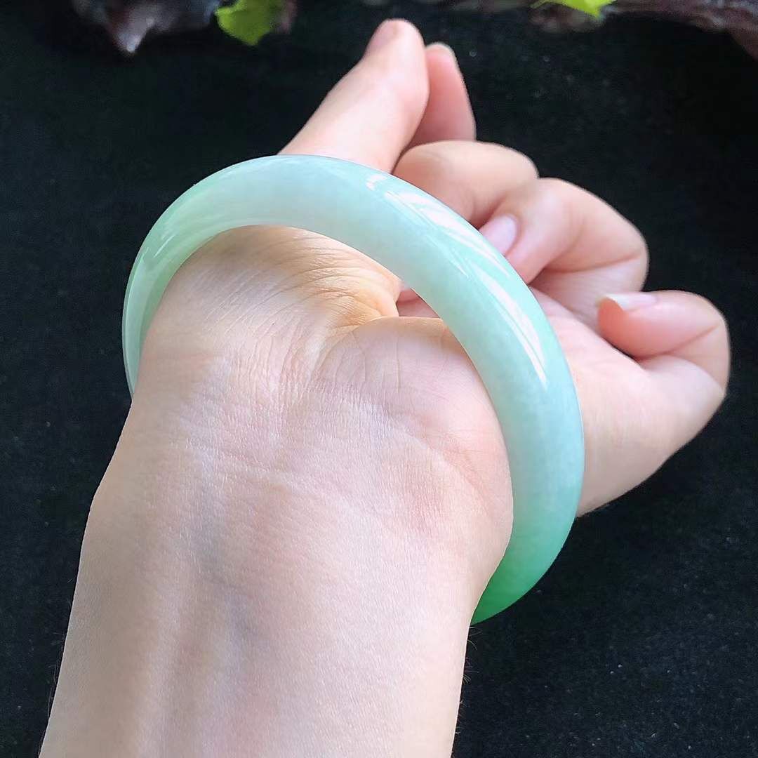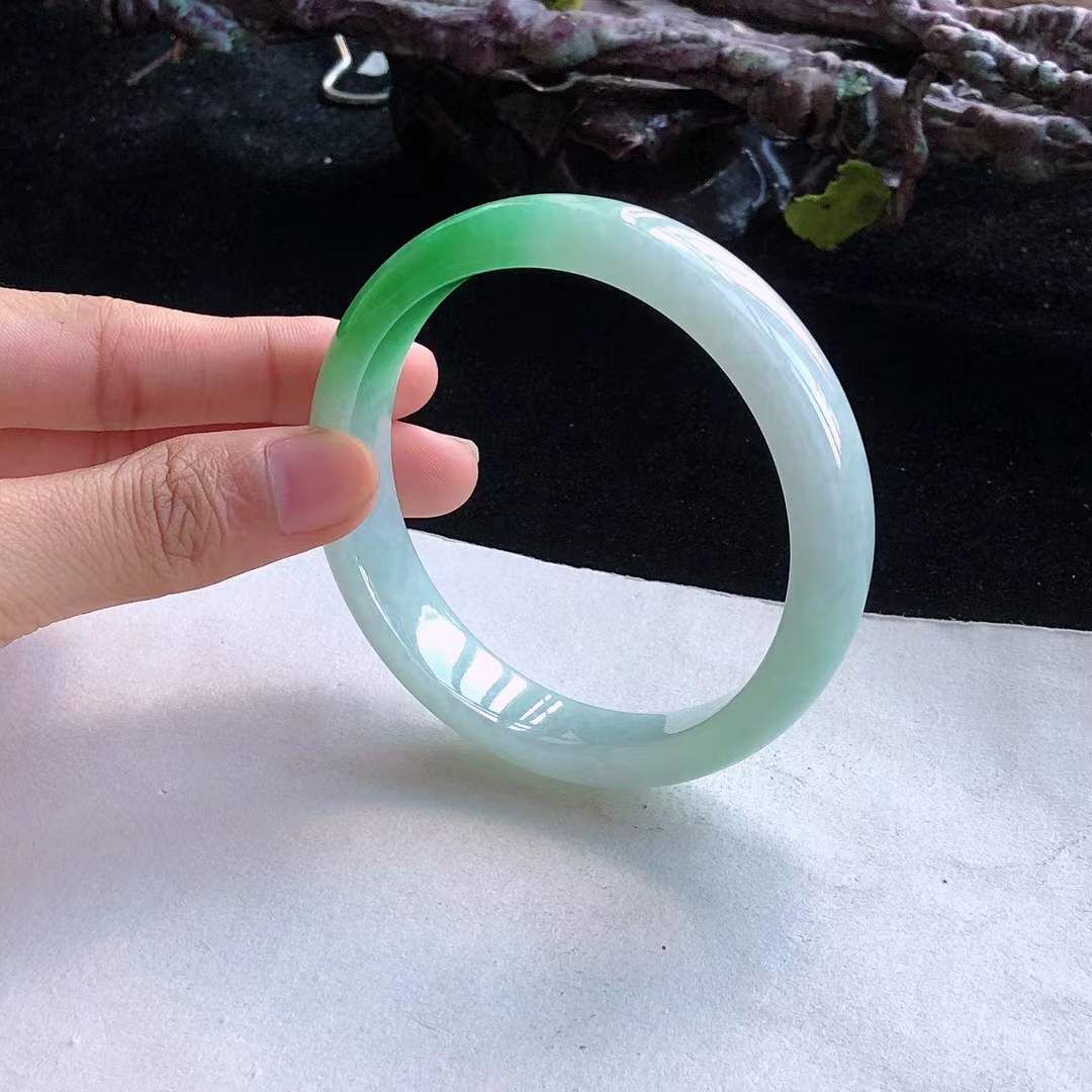 1015263 58.3mm冰糯飄陽綠翡翠正圈手鐲