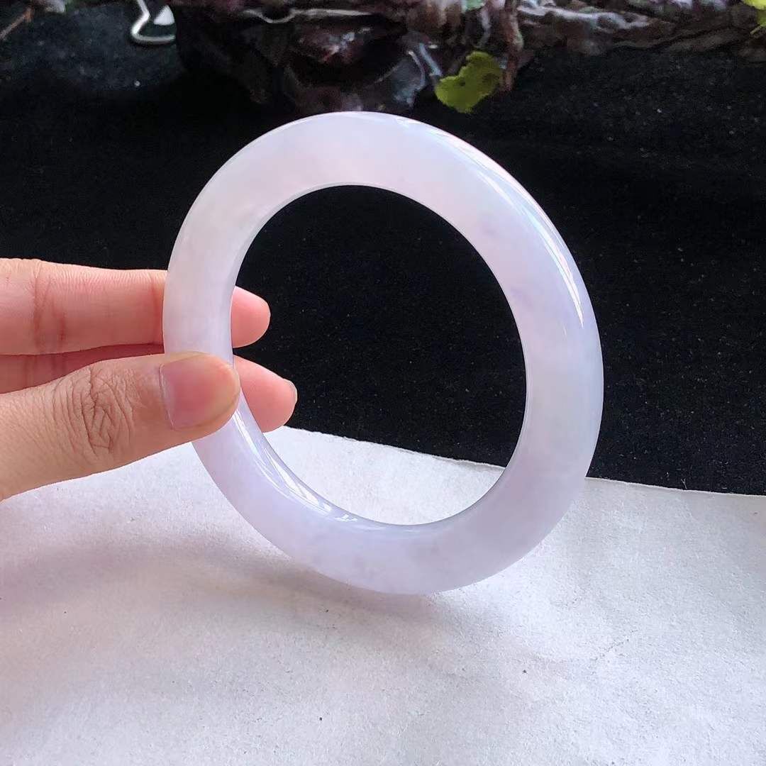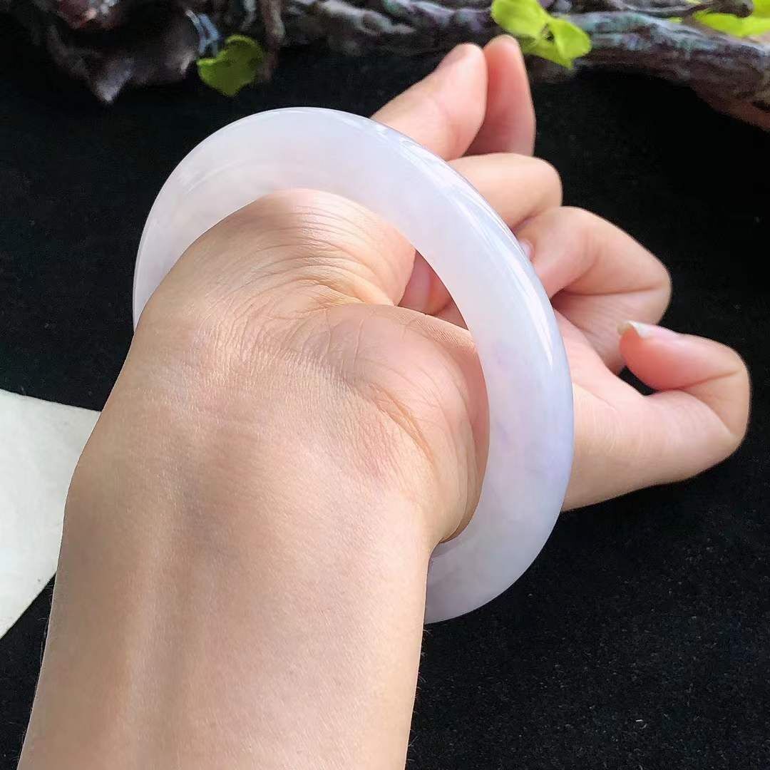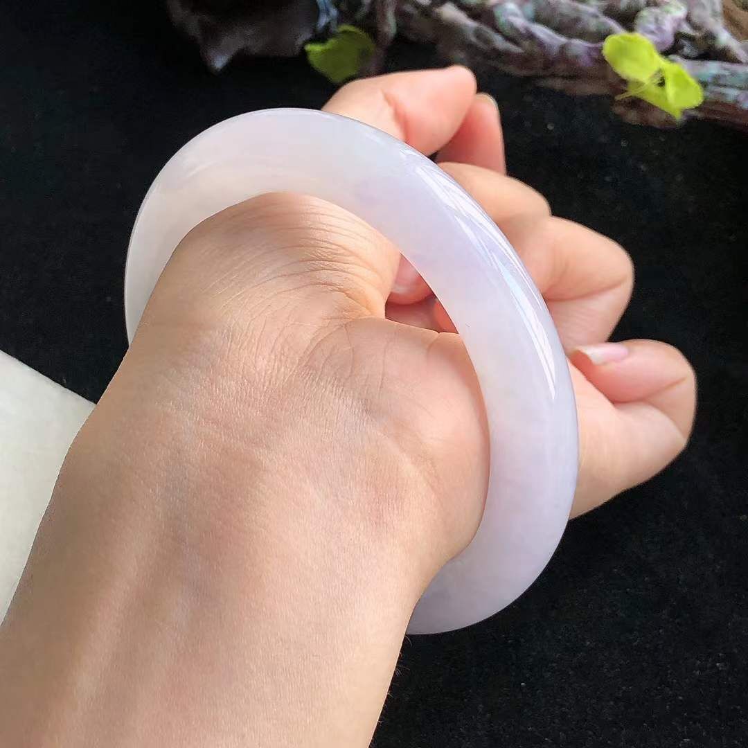 • 冰糯紫羅蘭翡翠圓條手鐲,天然翡翠A玉, 緬甸玉, Jade, Jadeite