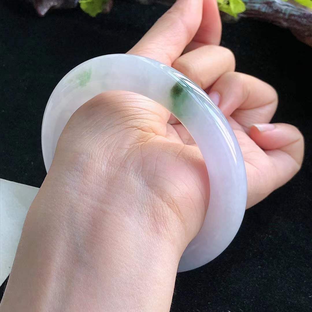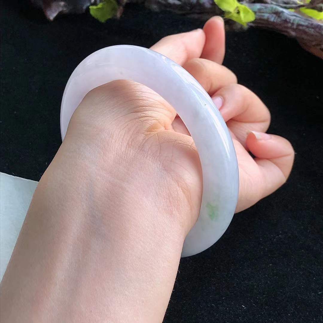 • 冰糯淡紫底飄綠翡翠圓條手鐲,天然翡翠A玉, 緬甸玉, Jade, Jadeite