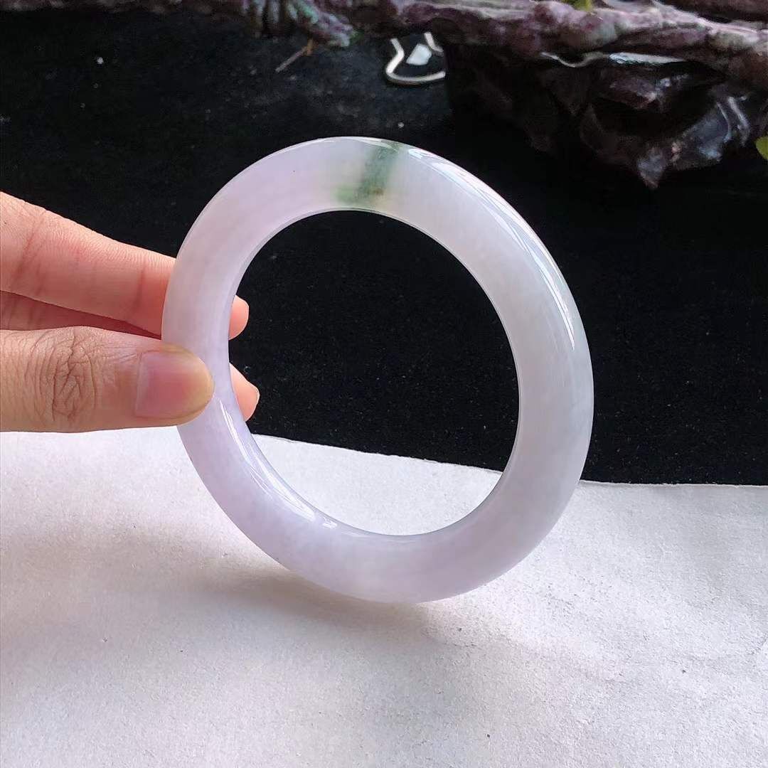 1015265 56.4mm冰糯淡紫底飄綠翡翠圓條手鐲