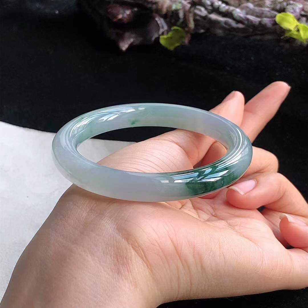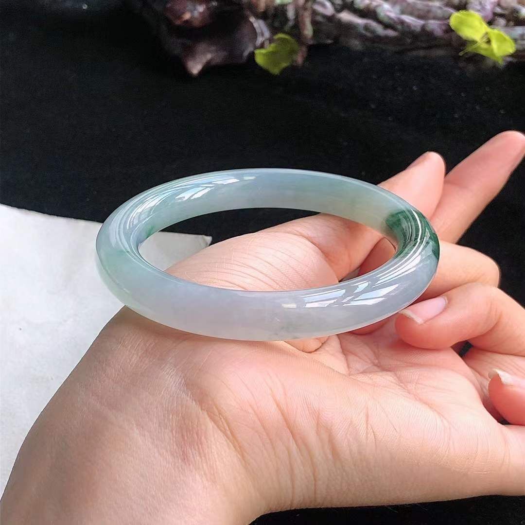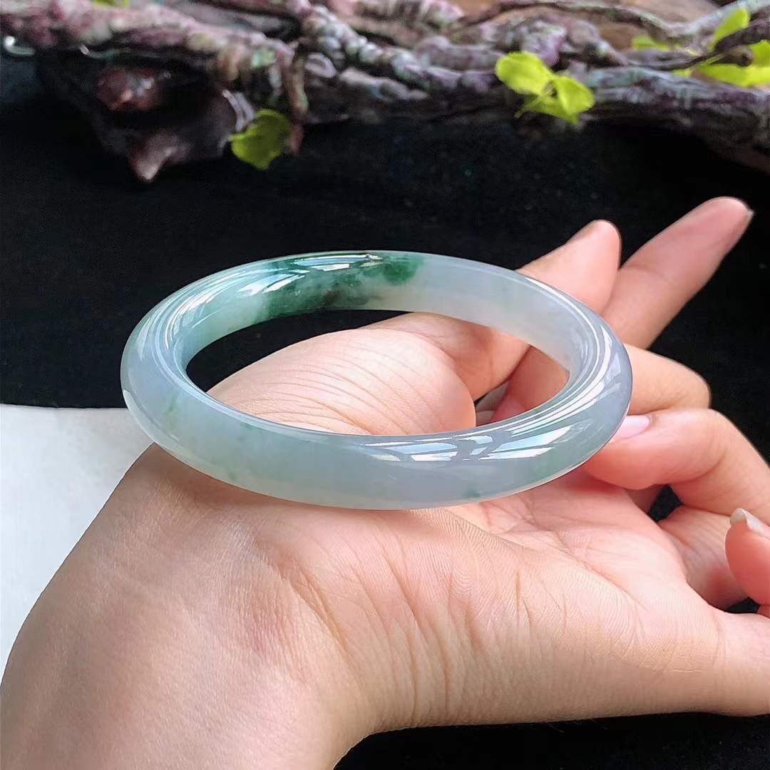 • 冰糯飄辣綠翡翠圓條手鐲,天然翡翠A玉, 緬甸玉, Jade, Jadeite
