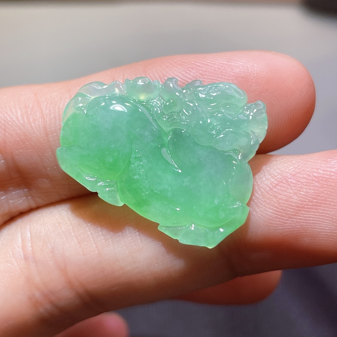 天然翡翠A玉,緬料,老坑冰糯種陽綠,冰透水潤。