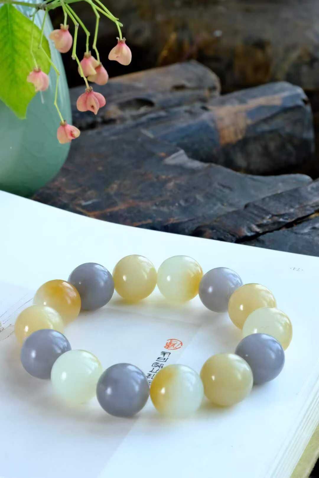和田玉紫羅蘭、糖玉,糖白搭配大尺寸手串,顆顆精選,每顆散發獨特的魅力組合在一起便是一串承載記憶的手鏈,安靜地等待,時光裡與你相遇。