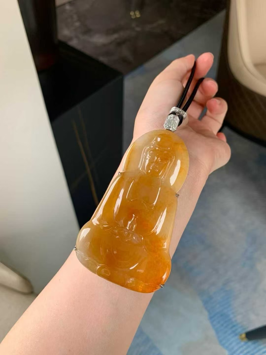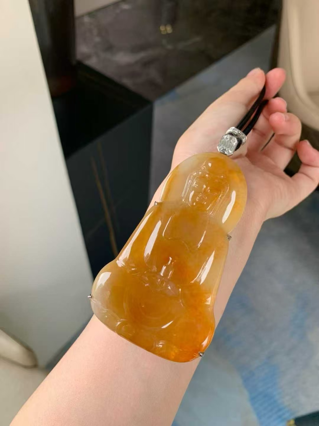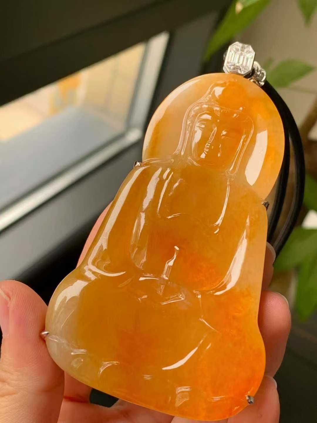 • 翡翠黃翡觀音吊墜,天然翡翠A玉, 緬甸玉, Jade, Jadeite