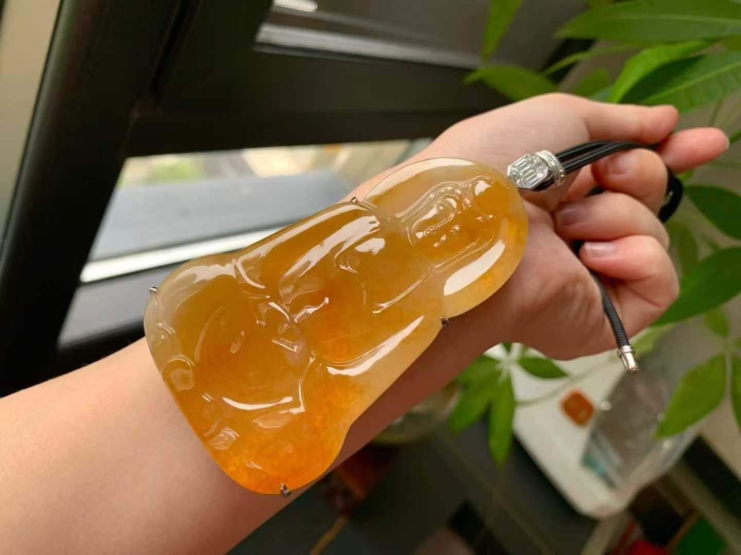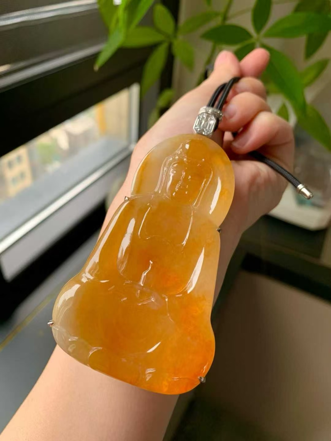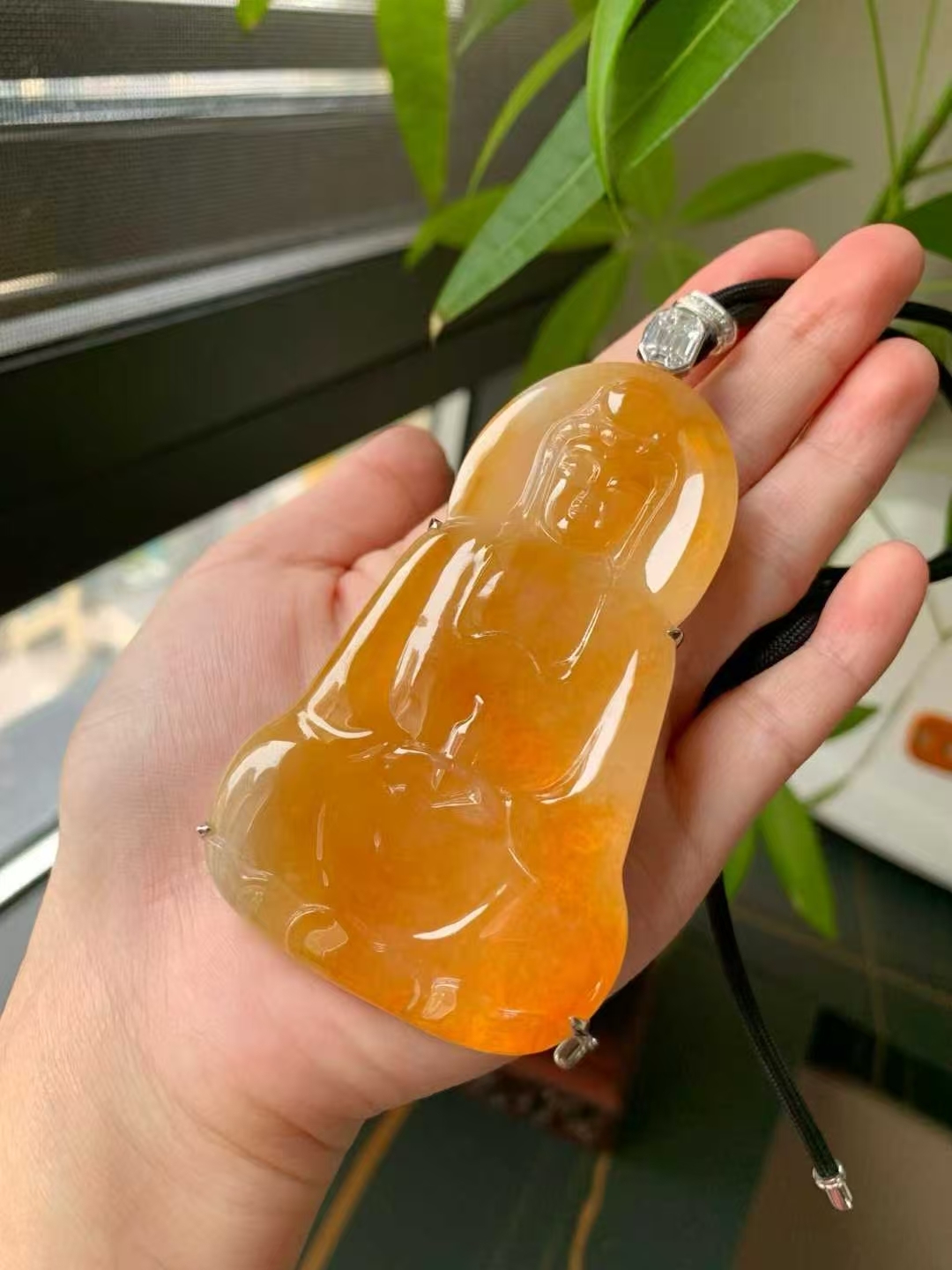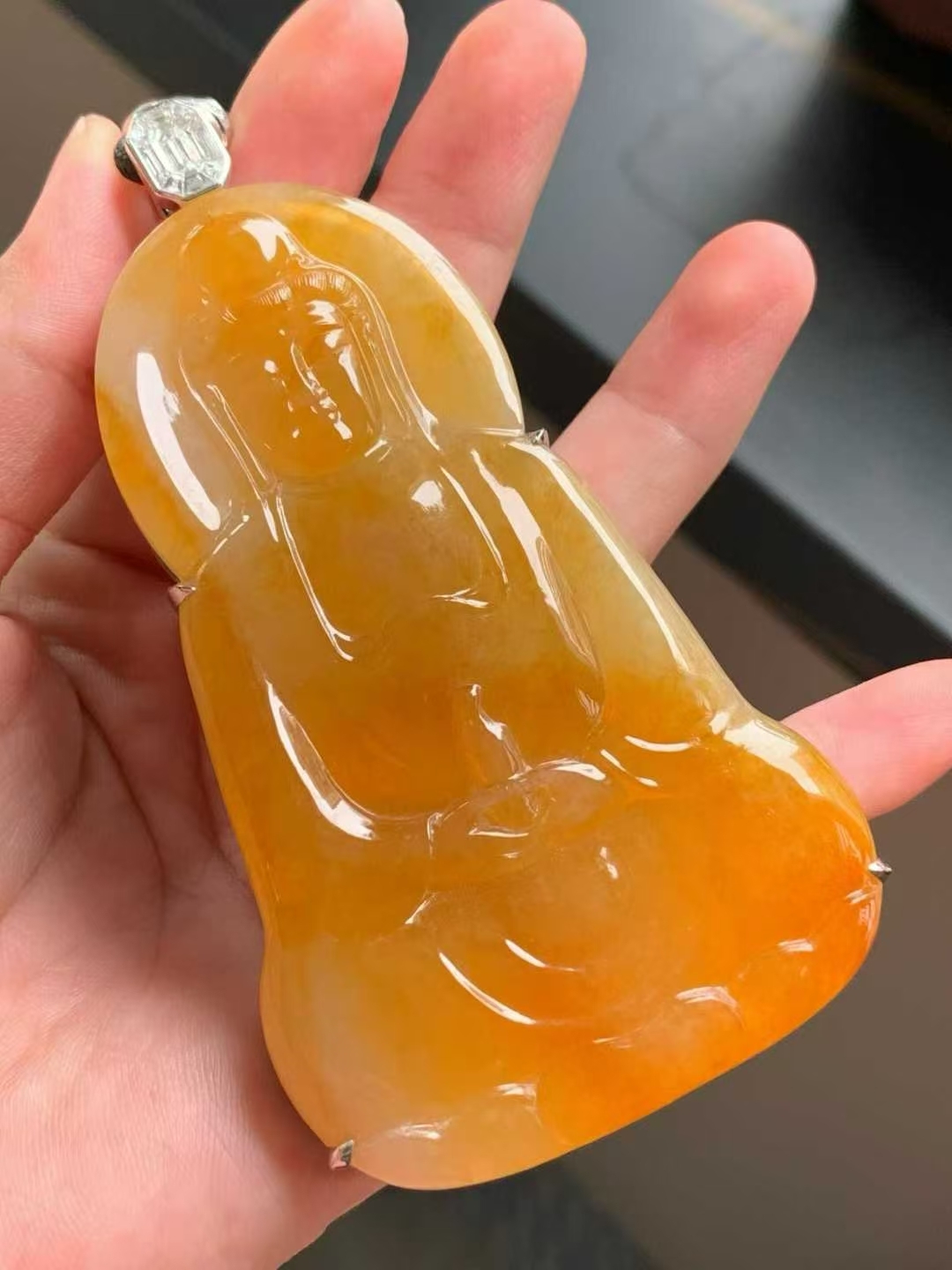 • 翡翠黃翡觀音吊墜,天然翡翠A玉, 緬甸玉, Jade, Jadeite