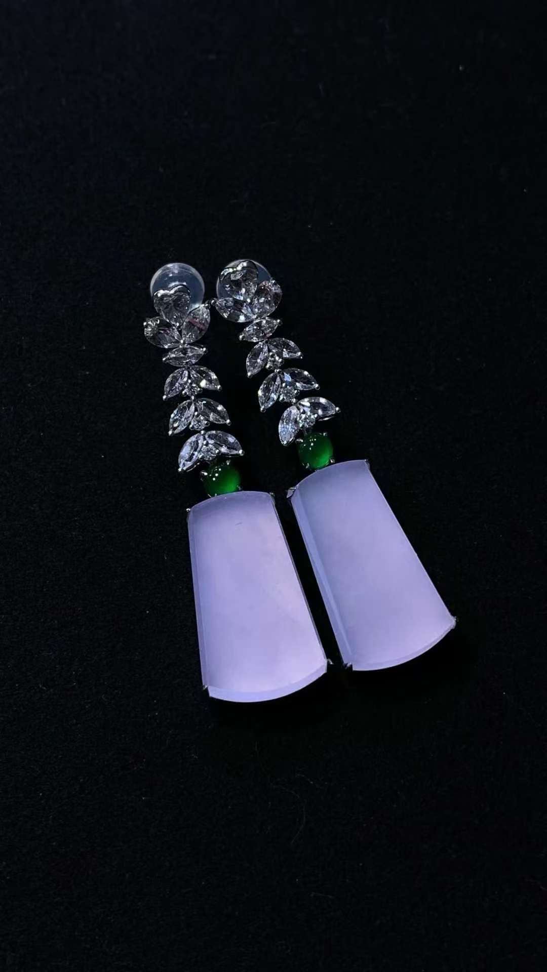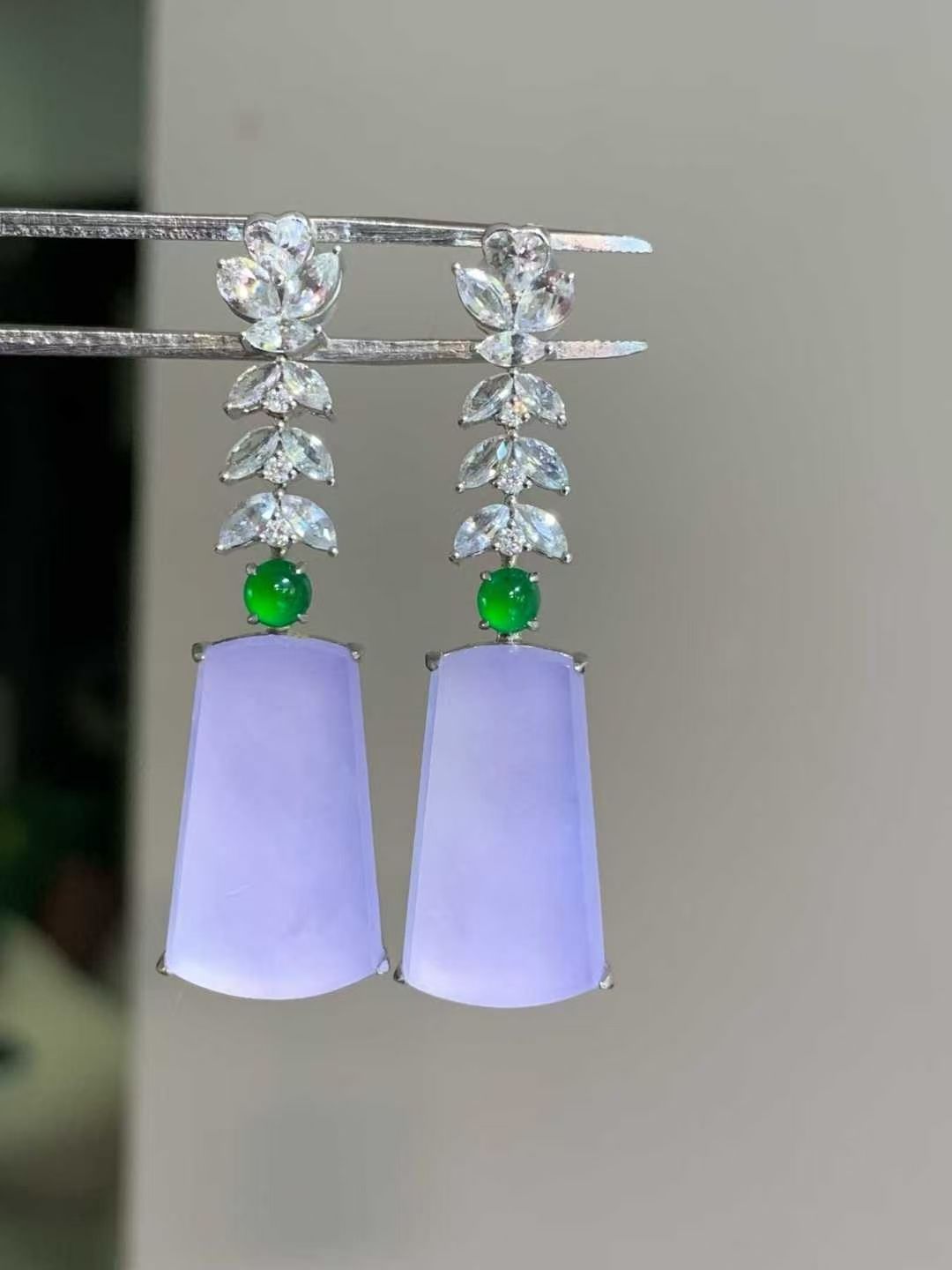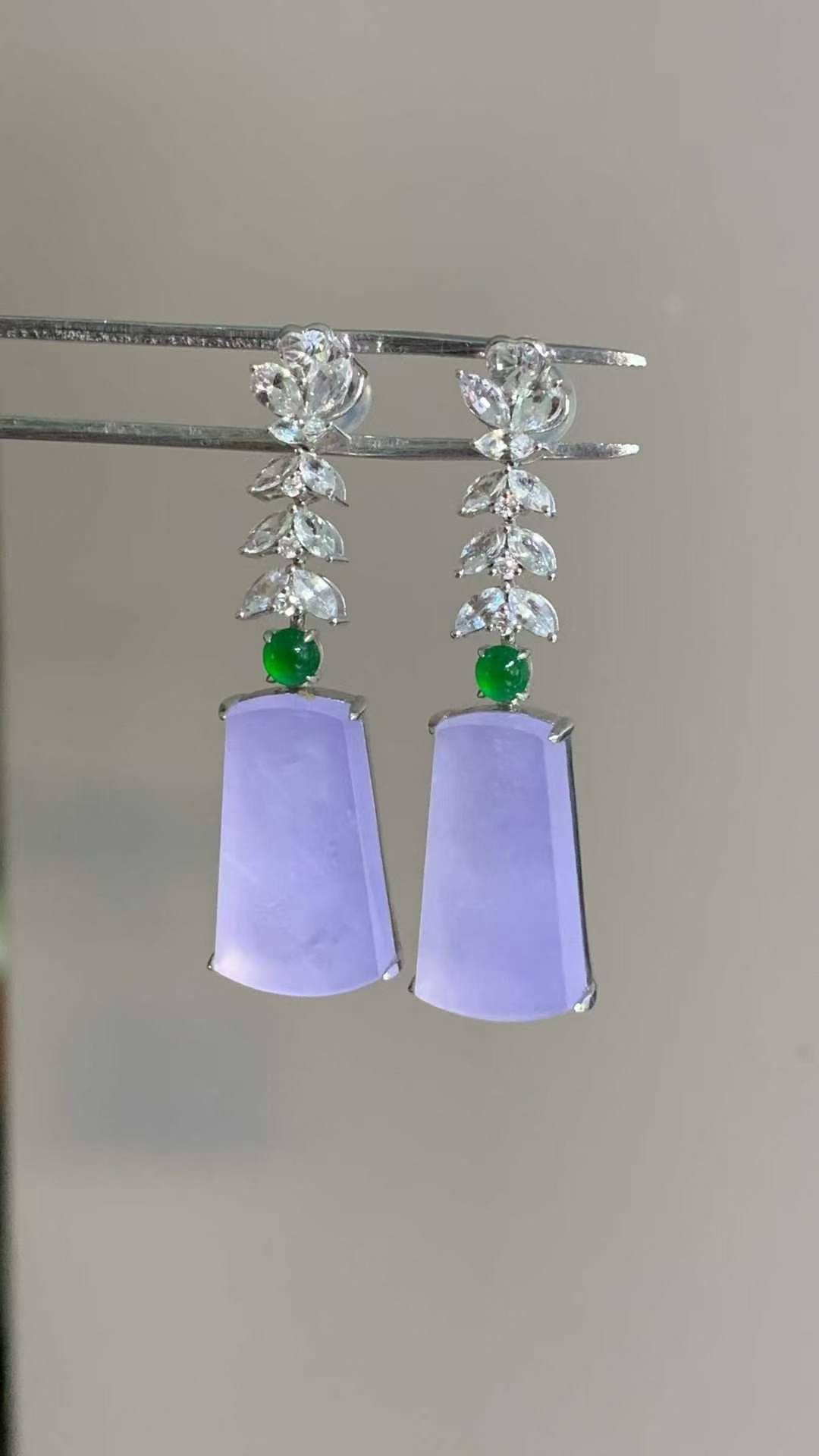 • 翡翠紫羅蘭無事牌耳墜一對,天然翡翠A玉, 緬甸玉, Jade, Jadeite