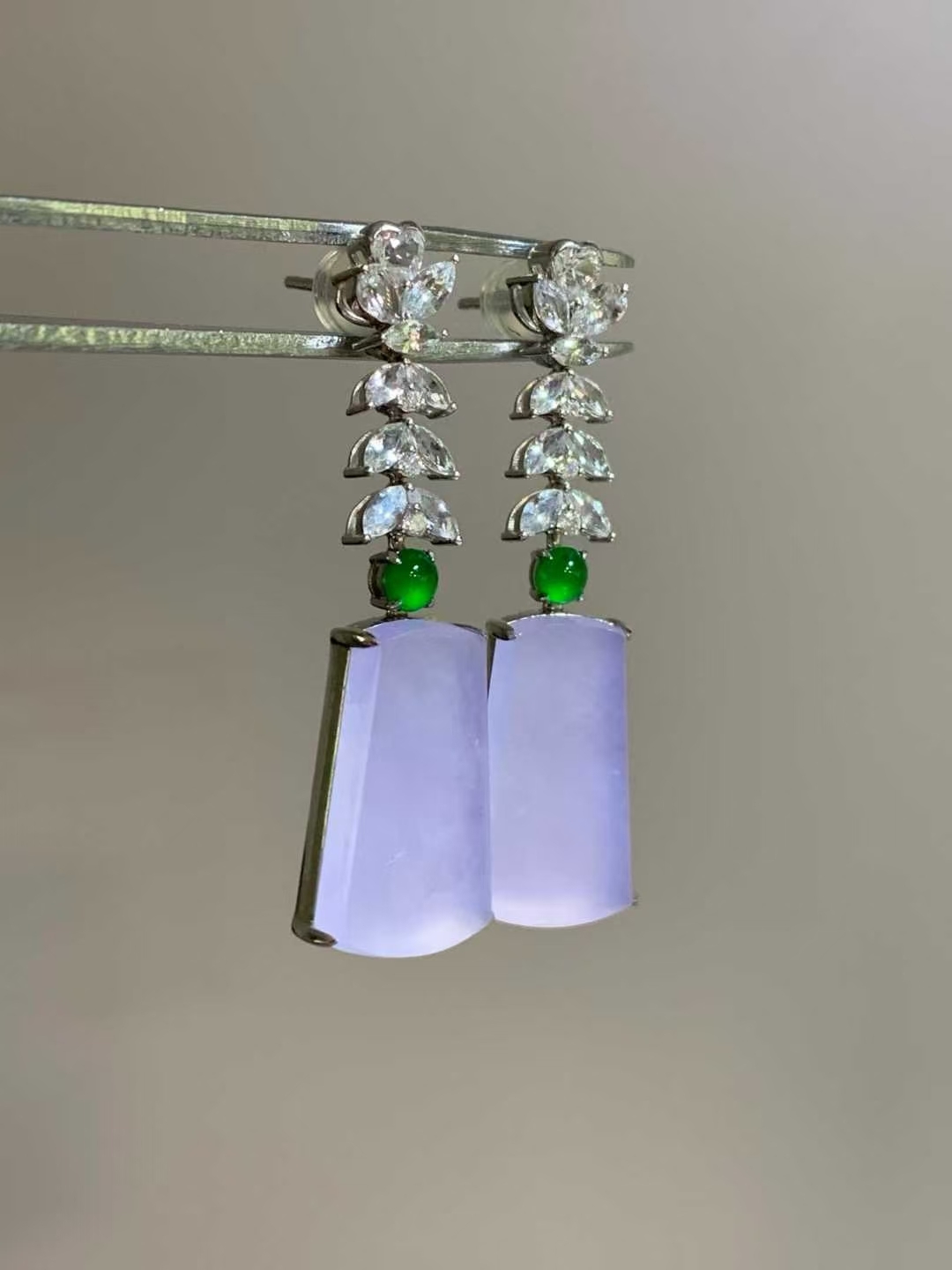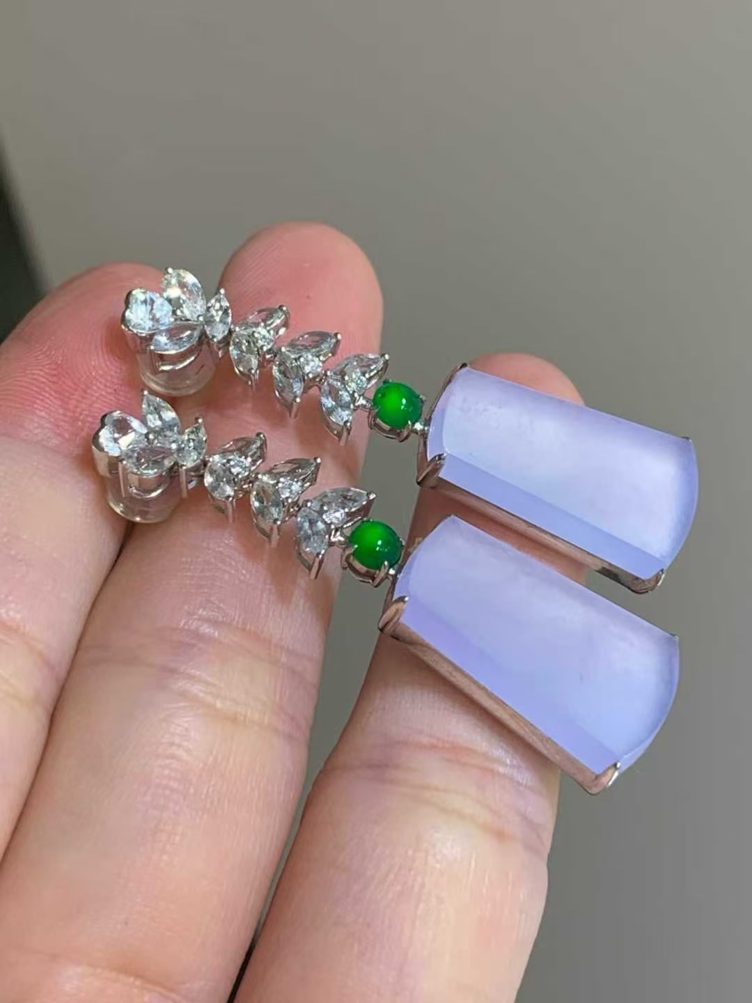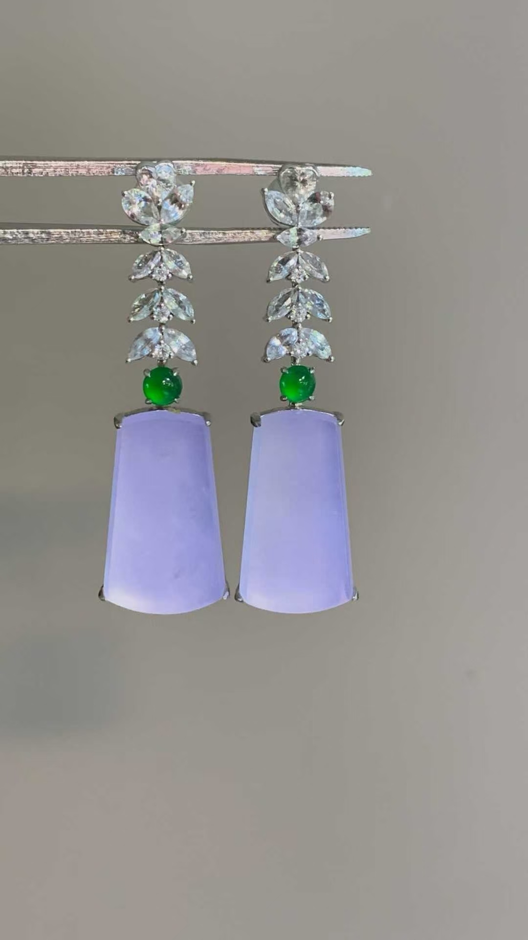 • 翡翠紫羅蘭無事牌耳墜一對,天然翡翠A玉, 緬甸玉, Jade, Jadeite