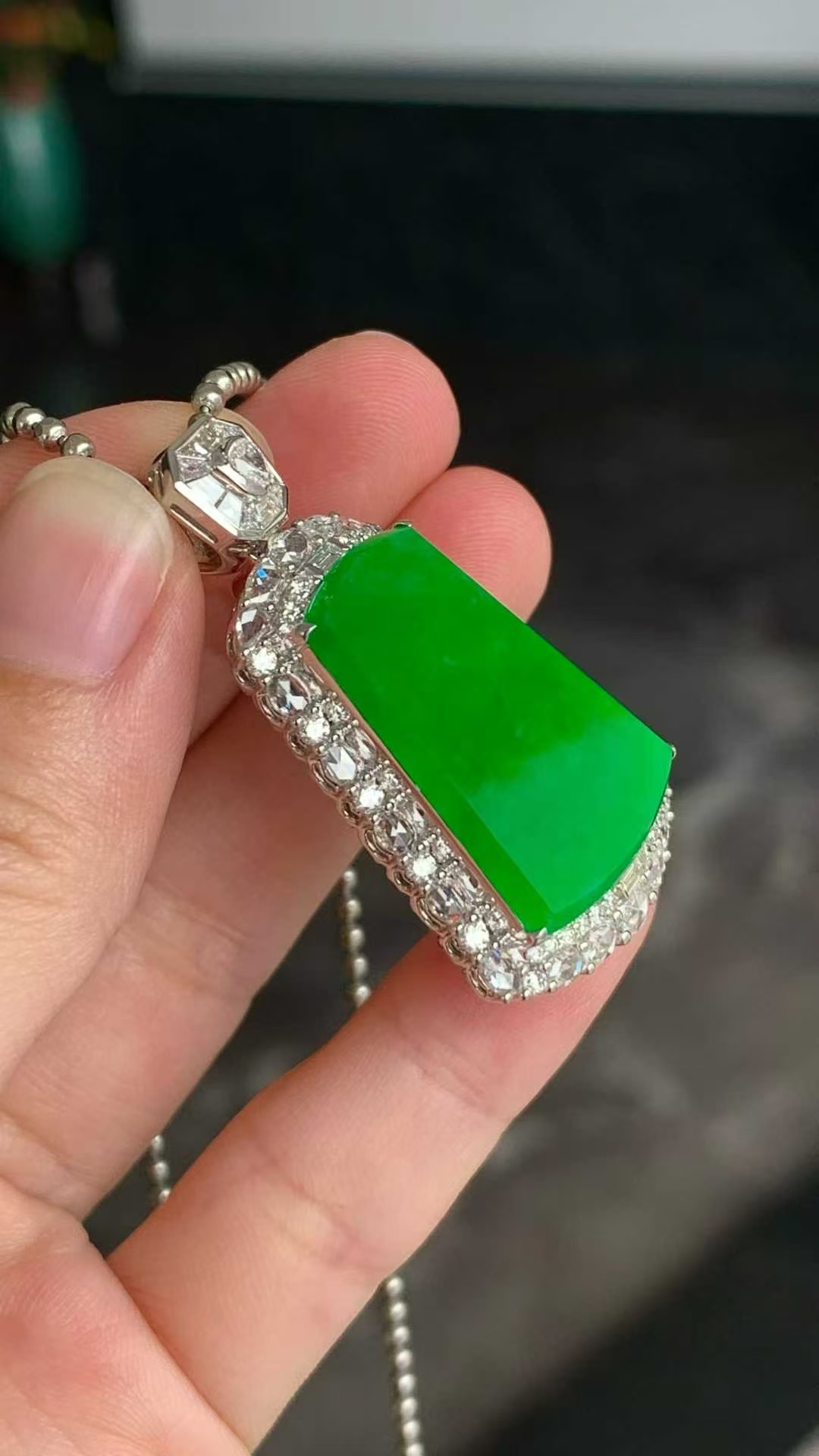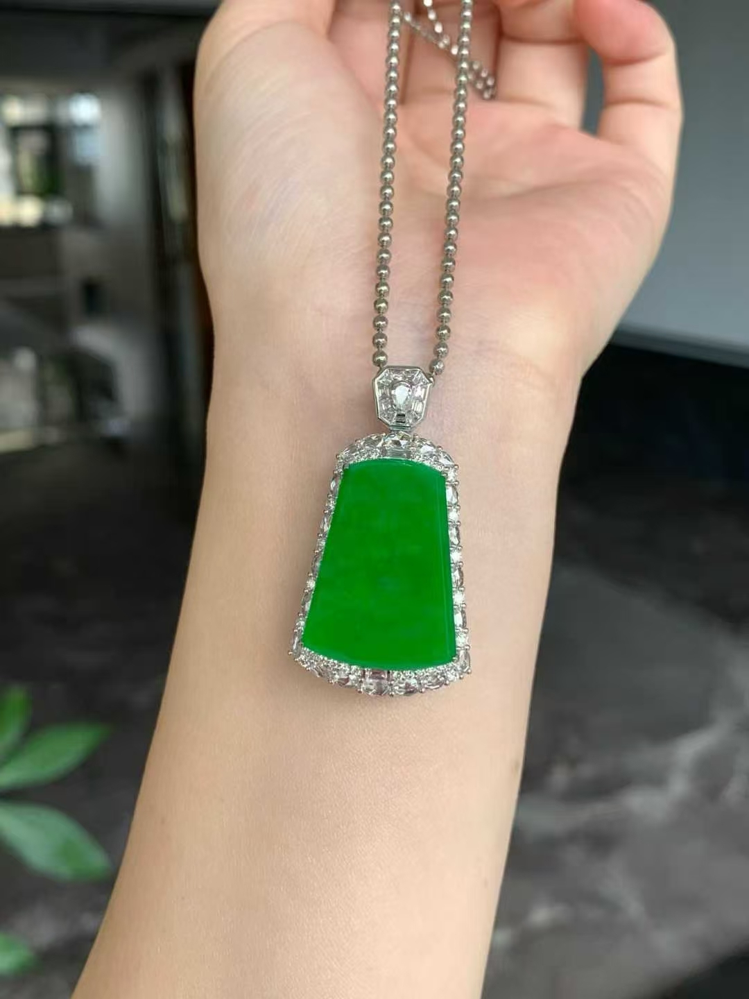 • 翡翠無事牌吊墜,天然翡翠A玉, 緬甸玉, Jade, Jadeite