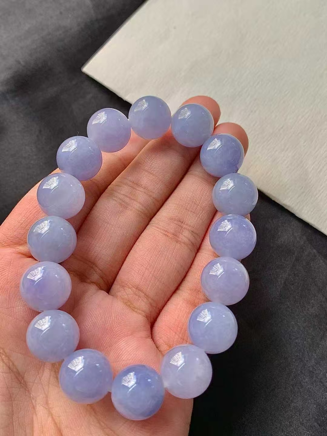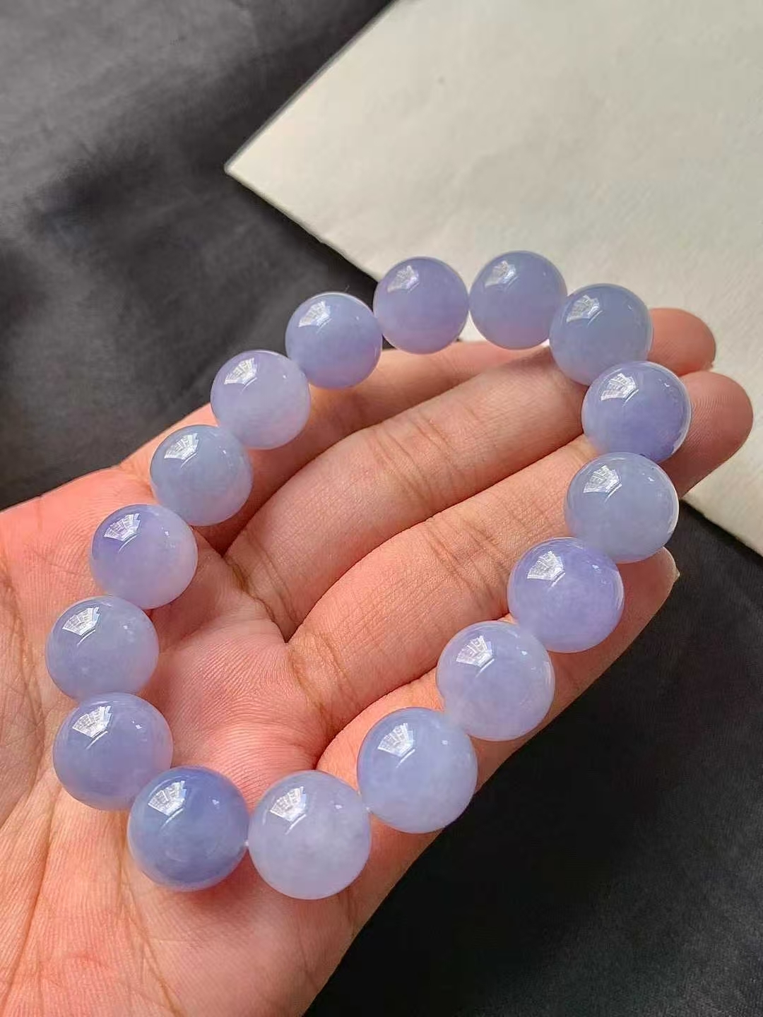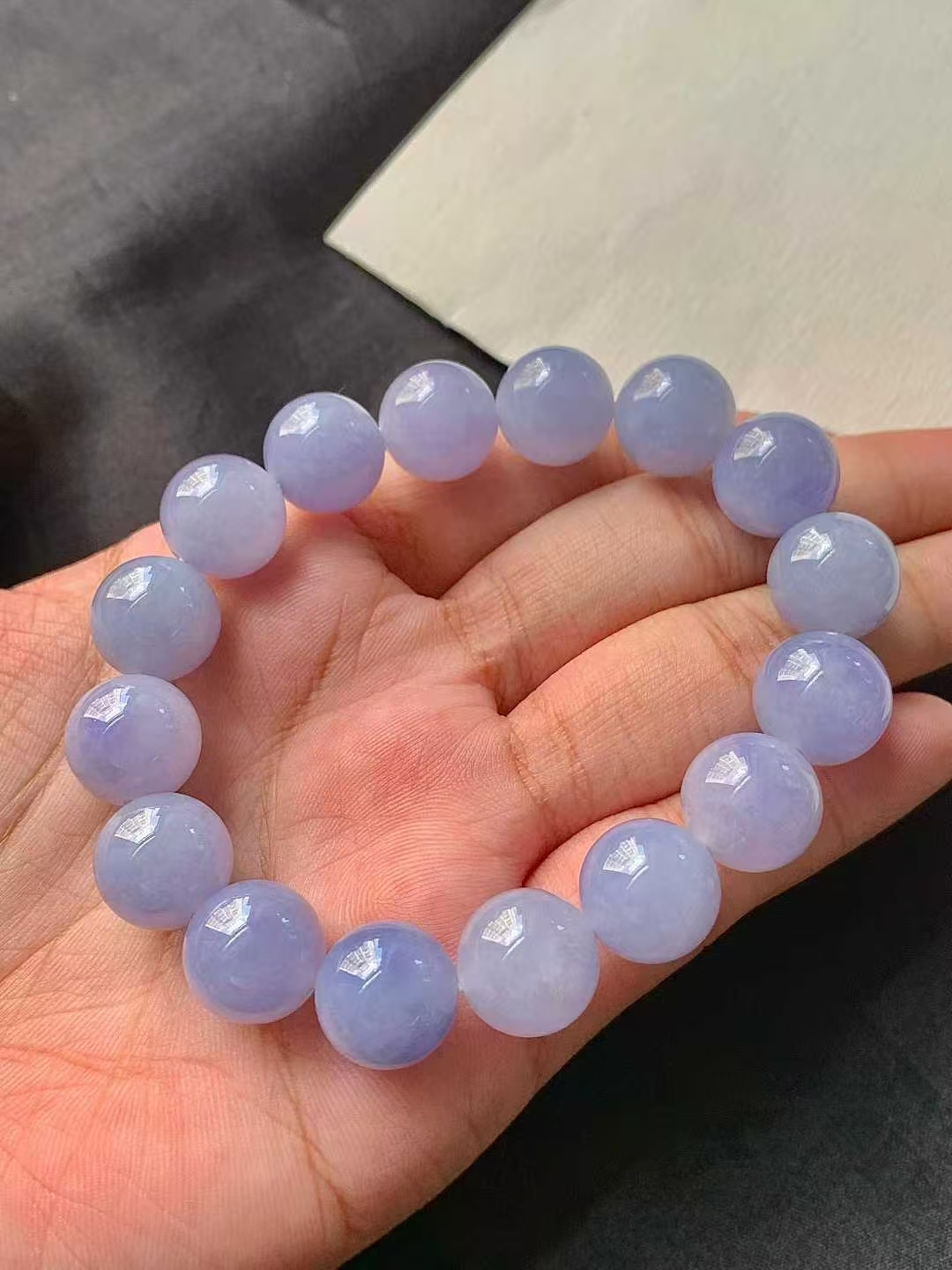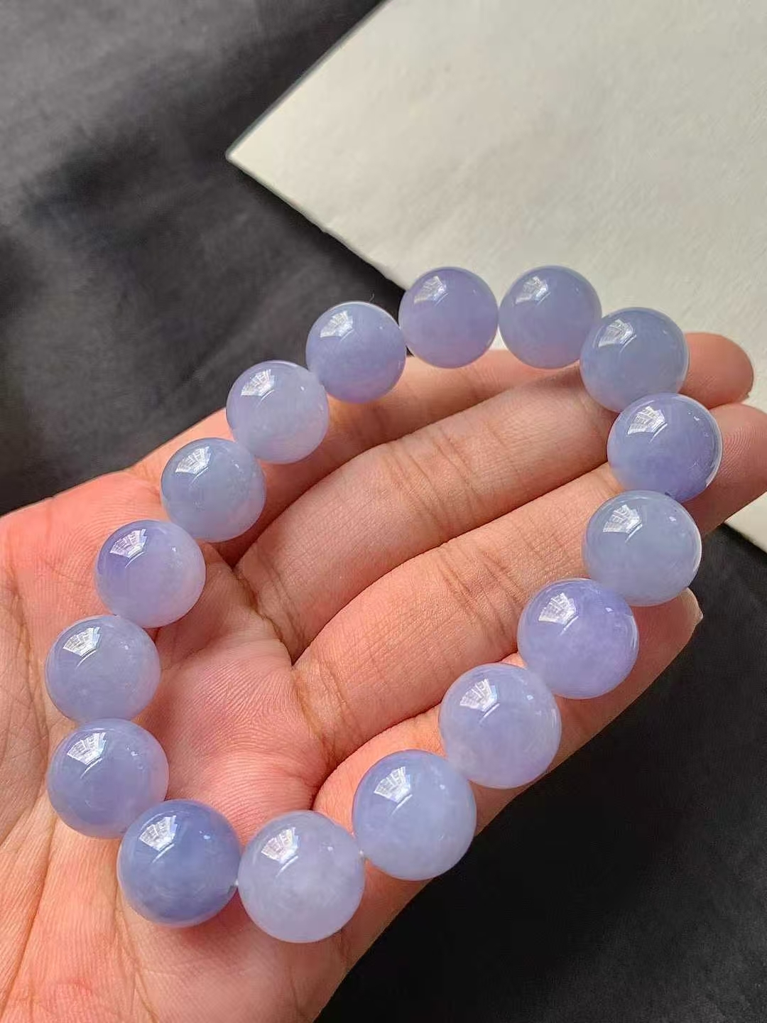 • 翡翠紫羅蘭手串 (12.6mm直徑),天然翡翠A玉, 緬甸玉, Jade, Jadeite