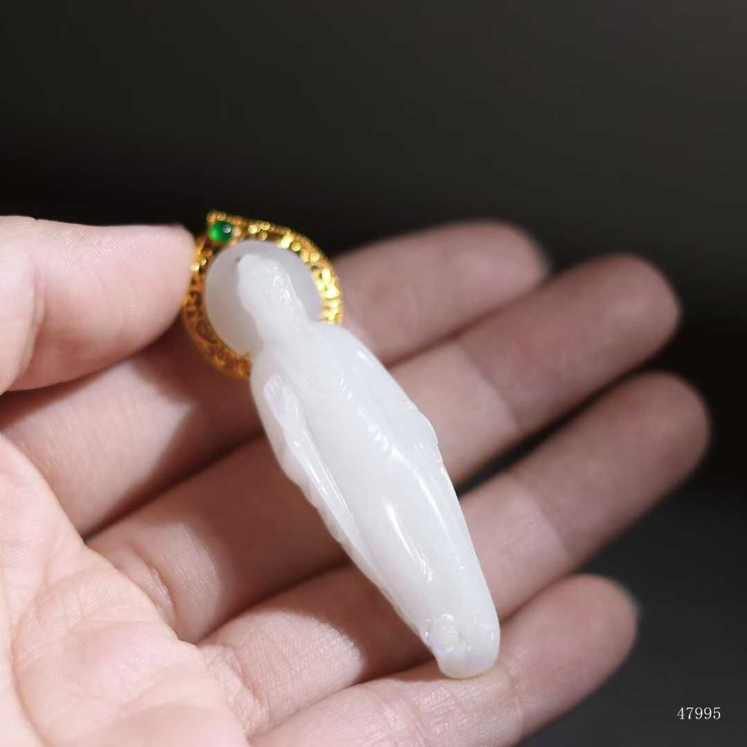 • 和田玉觀音素裹天華,天然和田玉軟玉