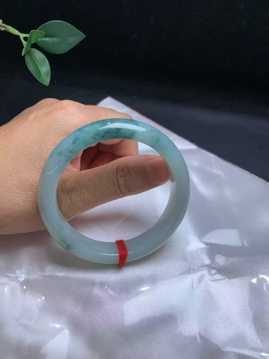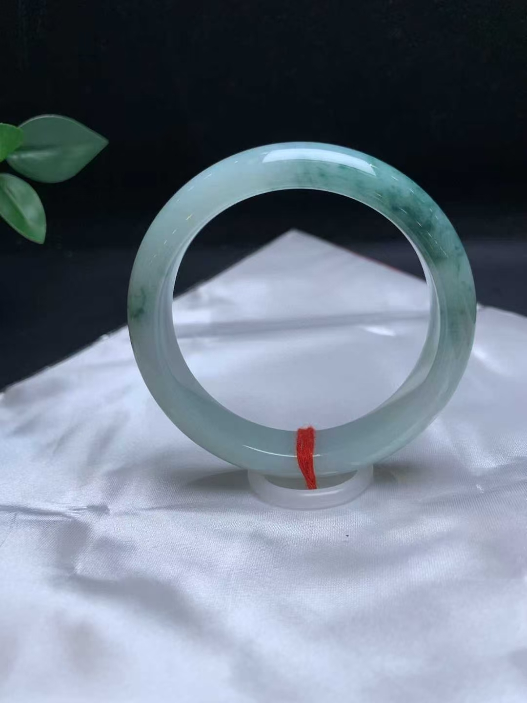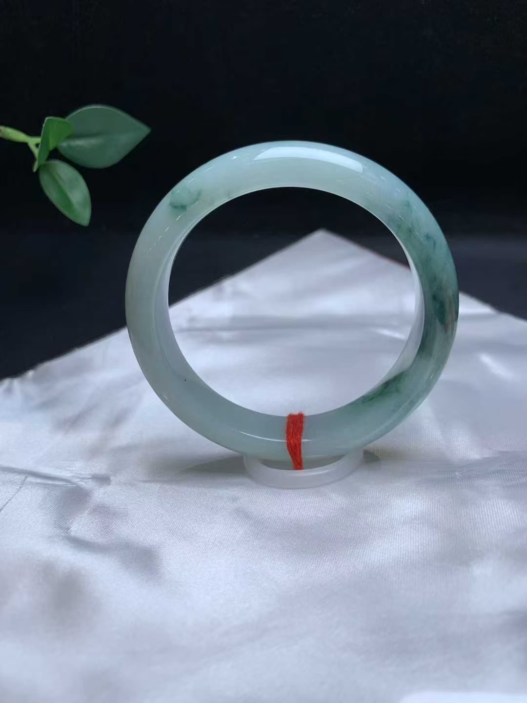 天然翡翠A玉,底子均勻乾淨,一截飄藍花,完美。
