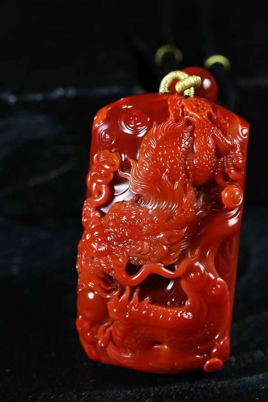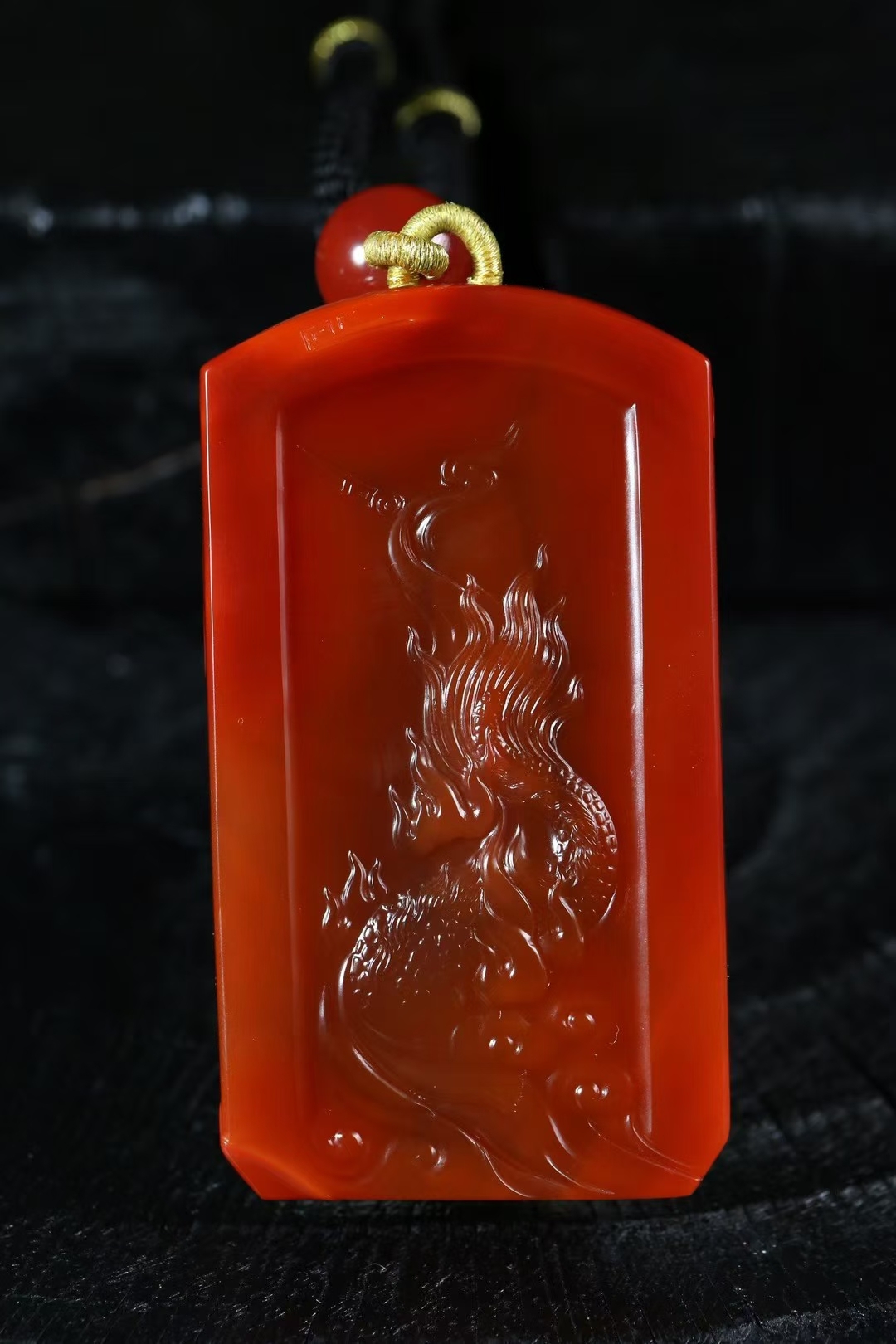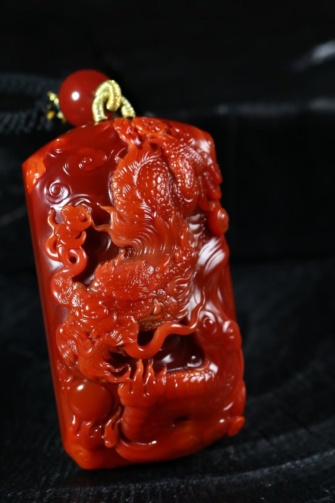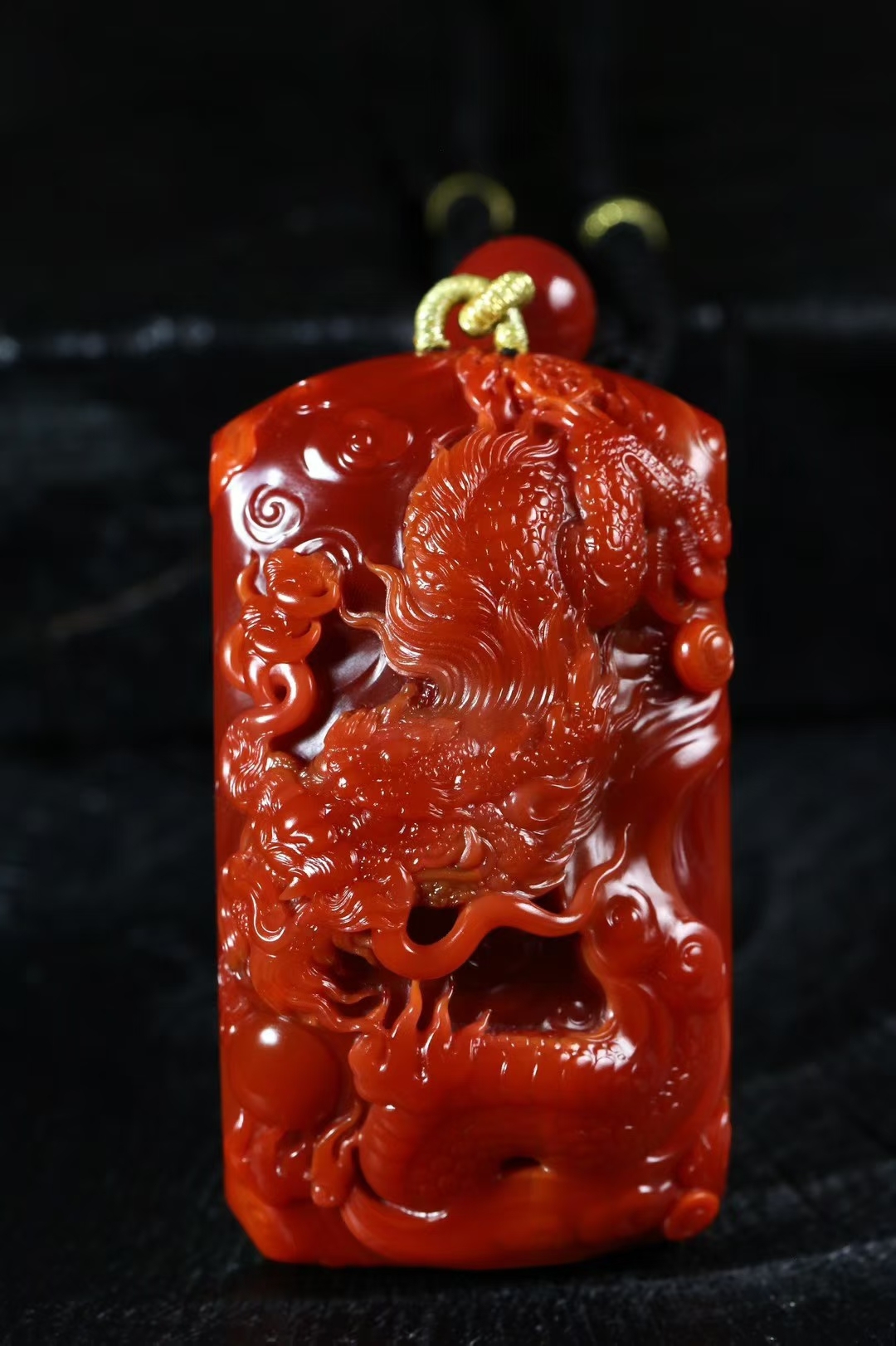 天然南紅瑪瑙,收藏級瓦西料,獨一無二的玫錦紅龍牌,以那麼多年歷史以來,無論在藝術上龍的形象怎麼表達,它仍然是能興雲雨、利萬物的神異動物,並成為一種文化的凝聚和積澱。