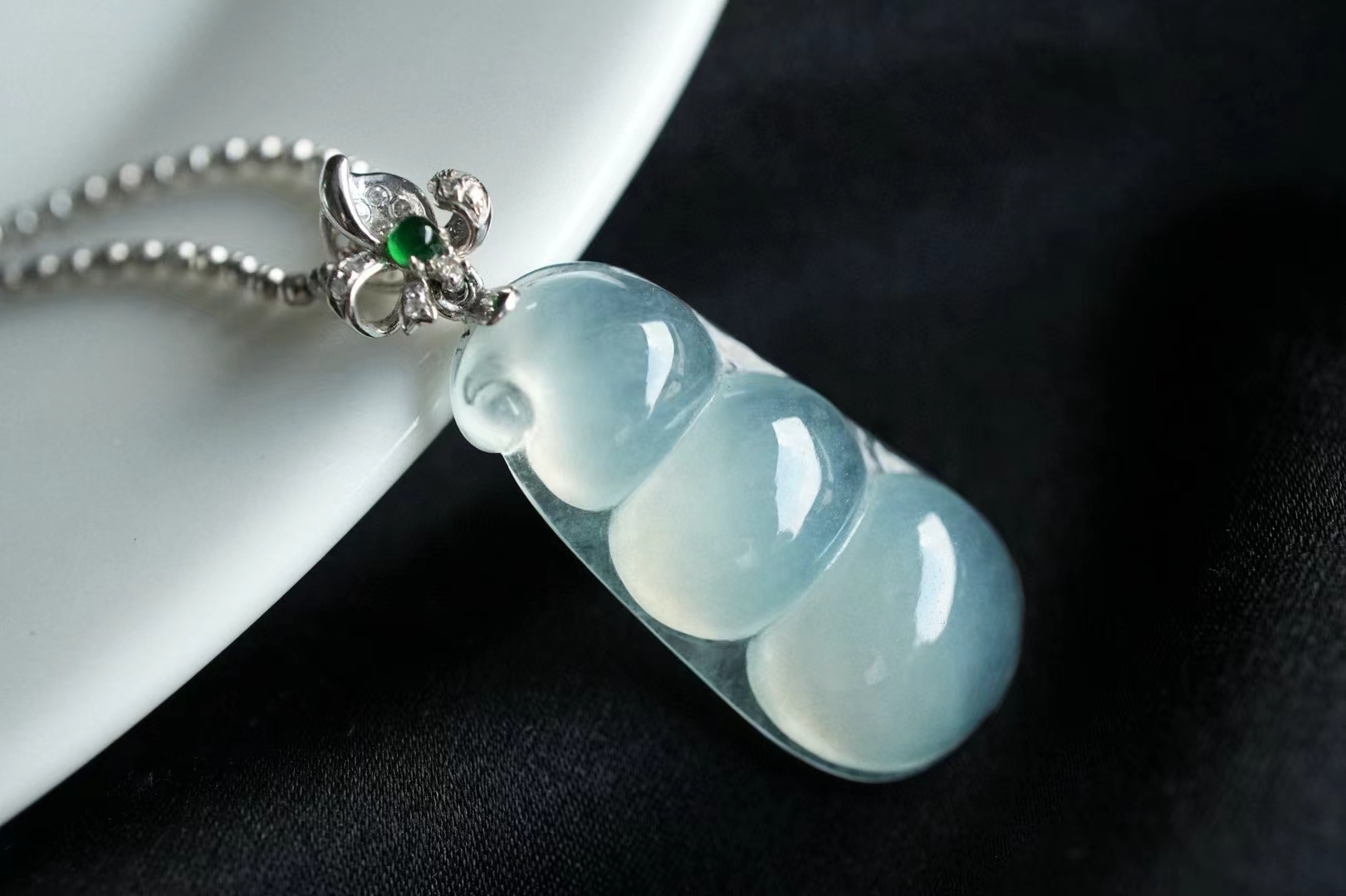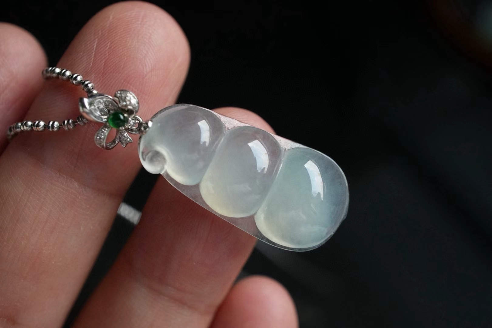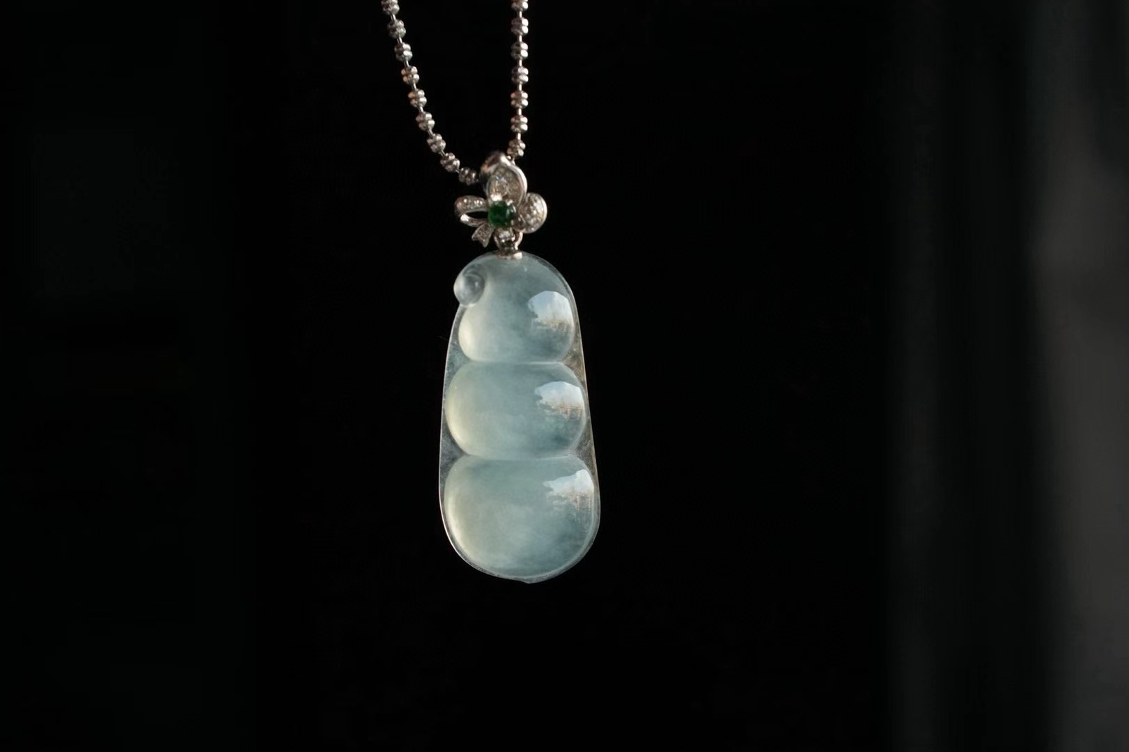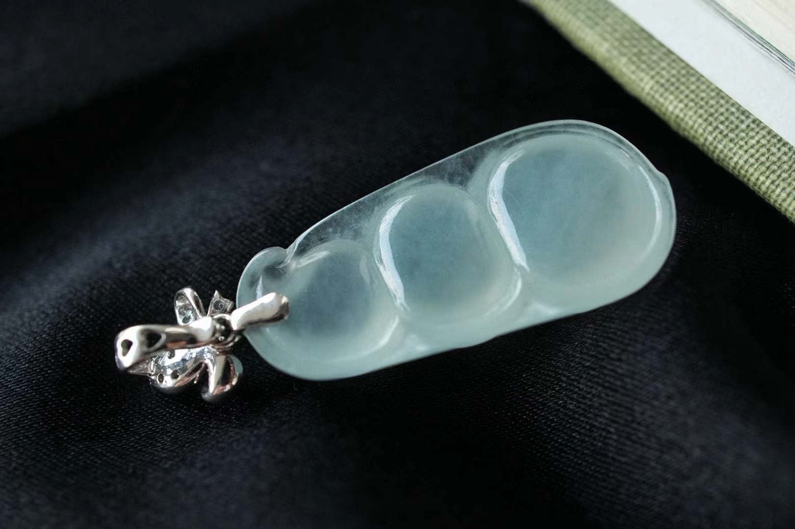 • 翡翠冰種福豆吊墜,天然翡翠A玉, 緬甸玉, Jade, Jadeite