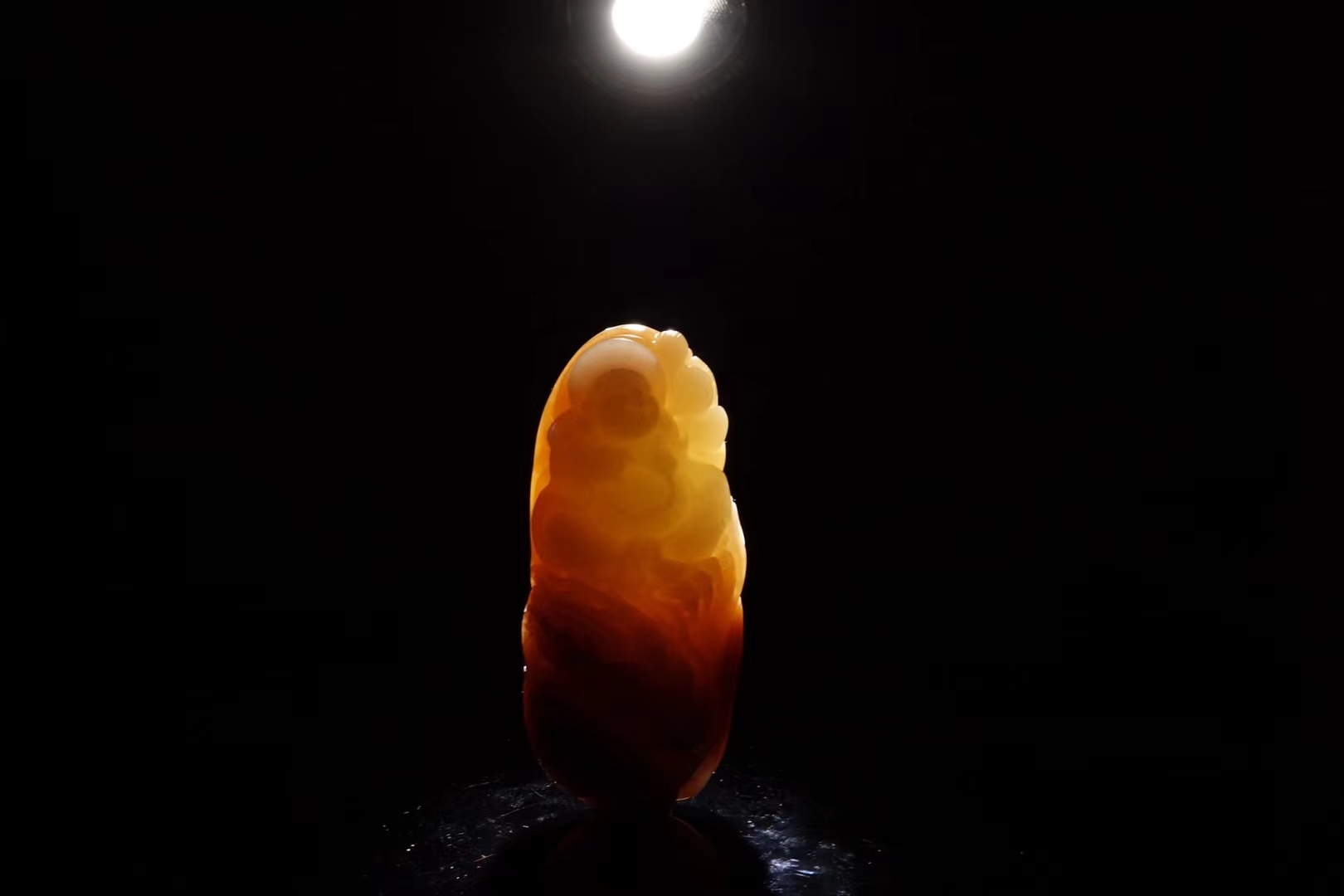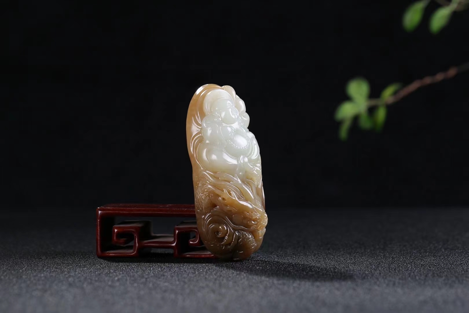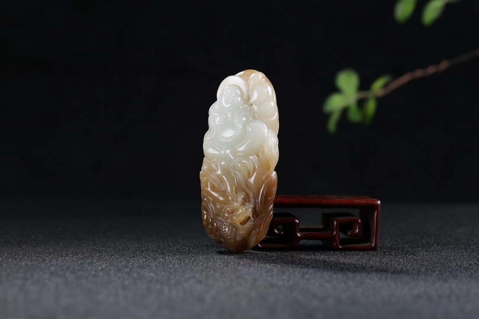 玉面浮雕彌勒佛,悠然愜意,體態豐腴,福耳垂肩,笑逐顏開,身穿袈裟,怡然自樂,刻畫傳神生動,大肚能容常人難容之事,忍得住心中煩惱,耐住歲月寂寞,不爭一時之氣,方免百日之憂。