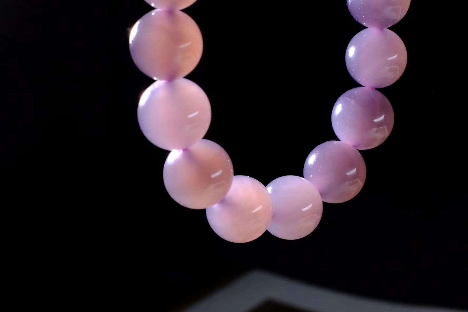 珍品,和田玉冰底紅紫圓珠手串。一細料,玻璃底,特色美物。