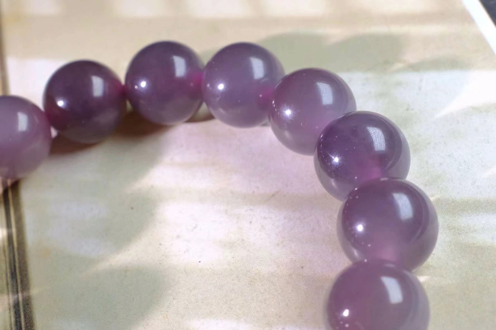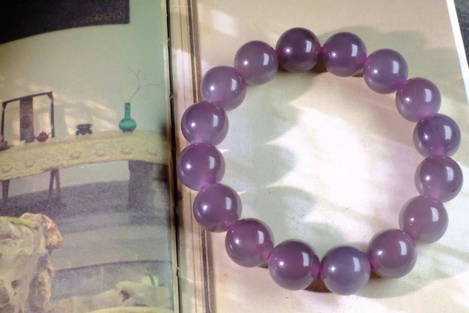 • 和田玉冰紫手串 (12mm直徑),天然和田玉軟玉