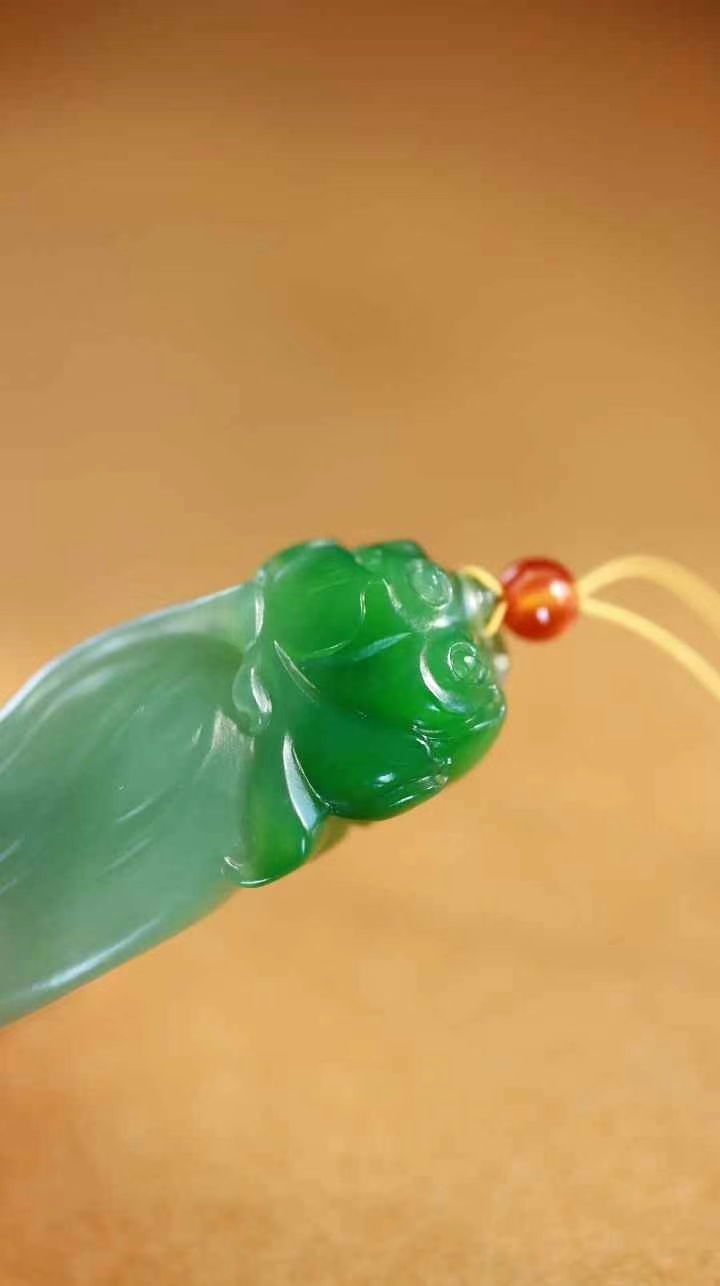 一朵芙蕖,開過尚盈盈…特色款碧玉俏色巧雕蓮花吊墜,稀少雙色。