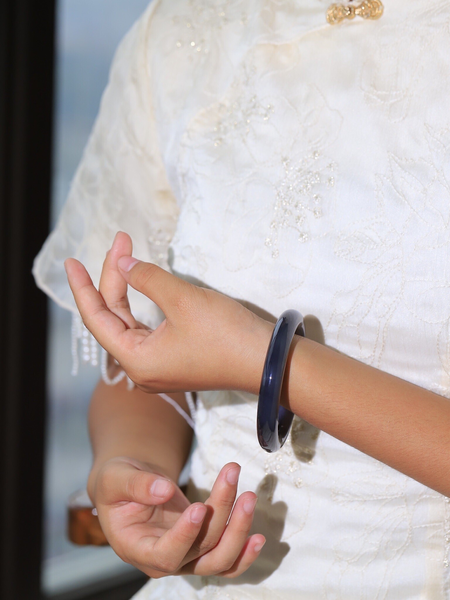 和田玉煙紫,玉質細膩油潤,做工細致精美,端莊素雅,亭亭玉立,芊芊素手,怎能忘鐲?秀美圓條,更顯婀娜。