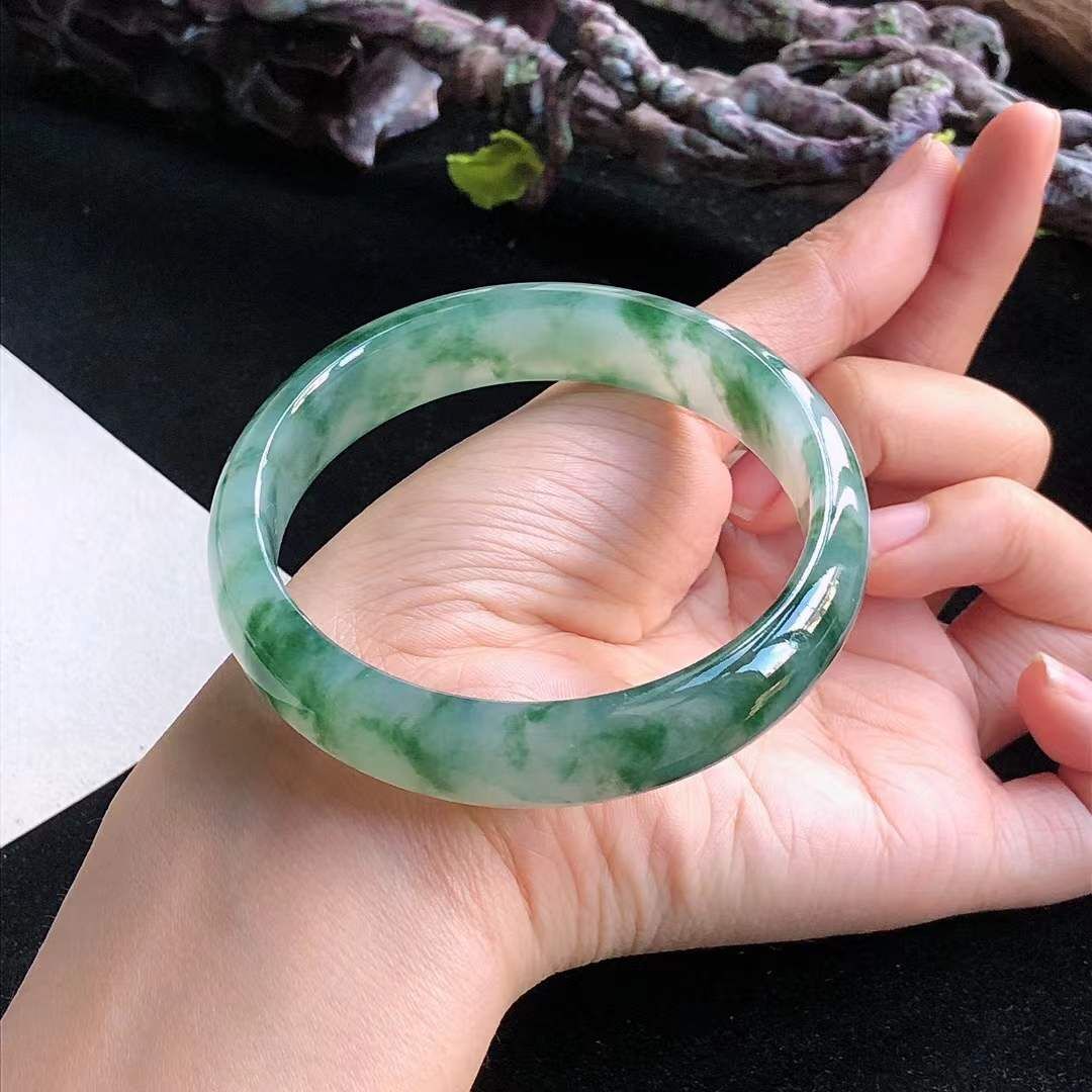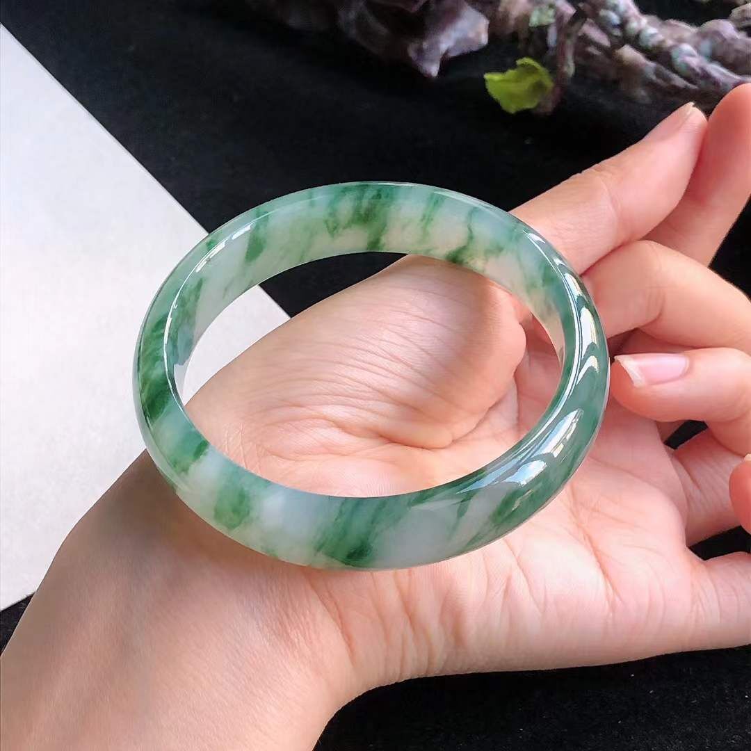 104262 58.6mm冰糯飄綠花翡翠正圈手鐲