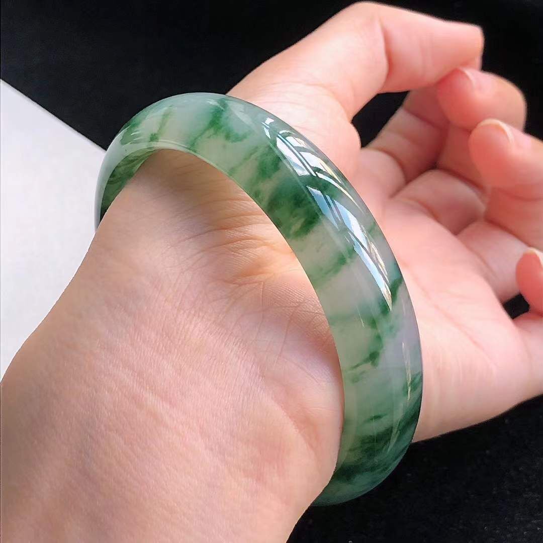 • 冰糯飄綠花翡翠正圈手鐲,天然翡翠A玉, 緬甸玉, Jade, Jadeite