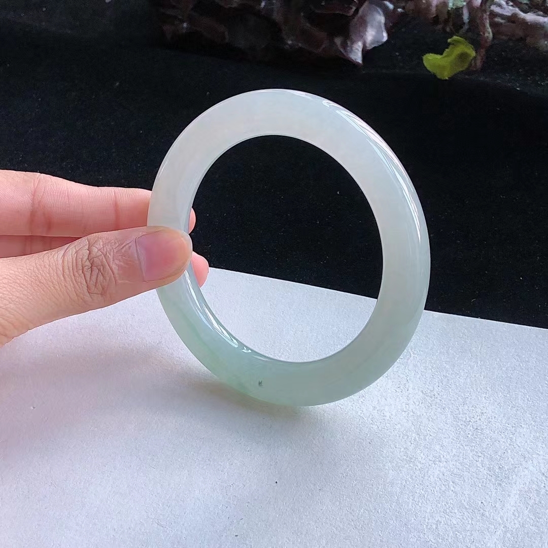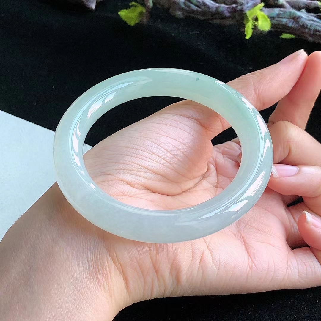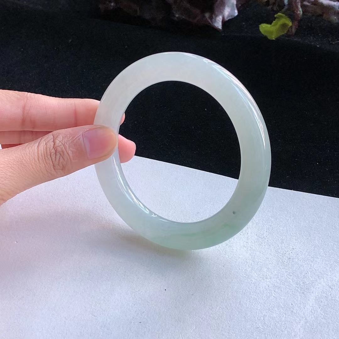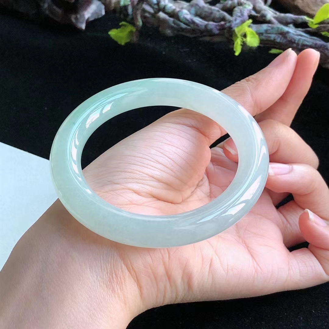 • 冰糯種淡綠翡翠圓條手鐲,天然翡翠A玉, 緬甸玉, Jade, Jadeite