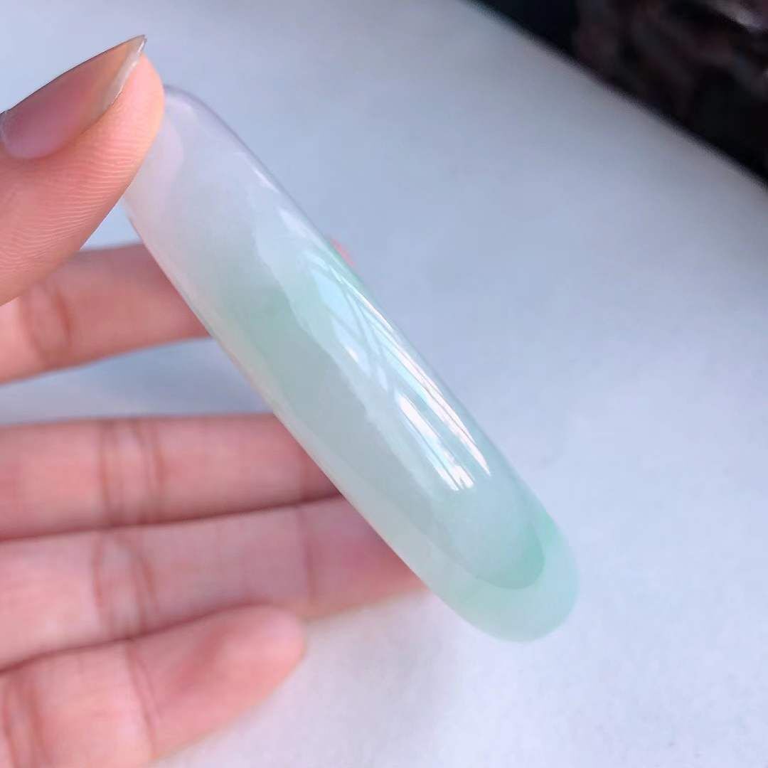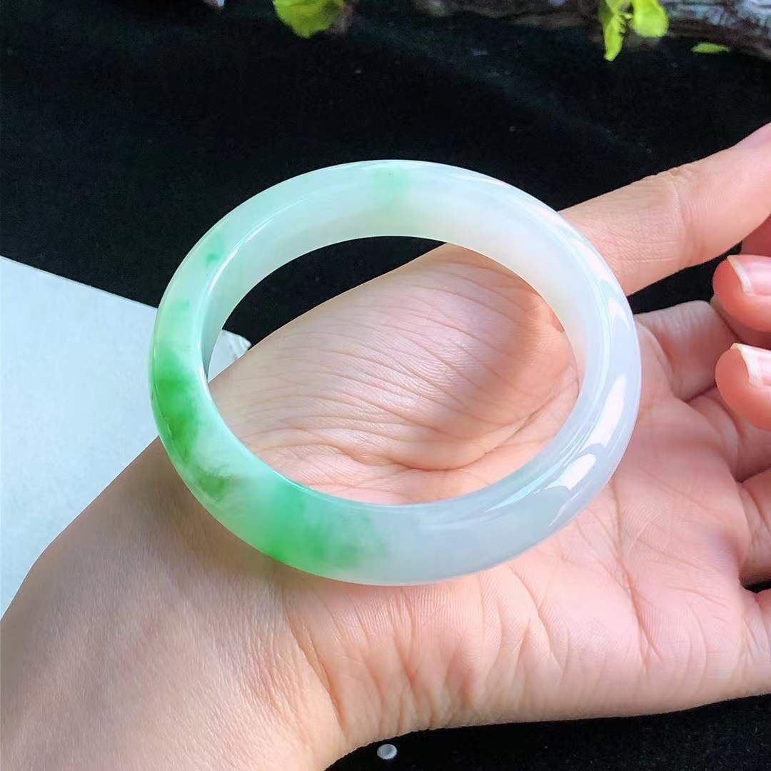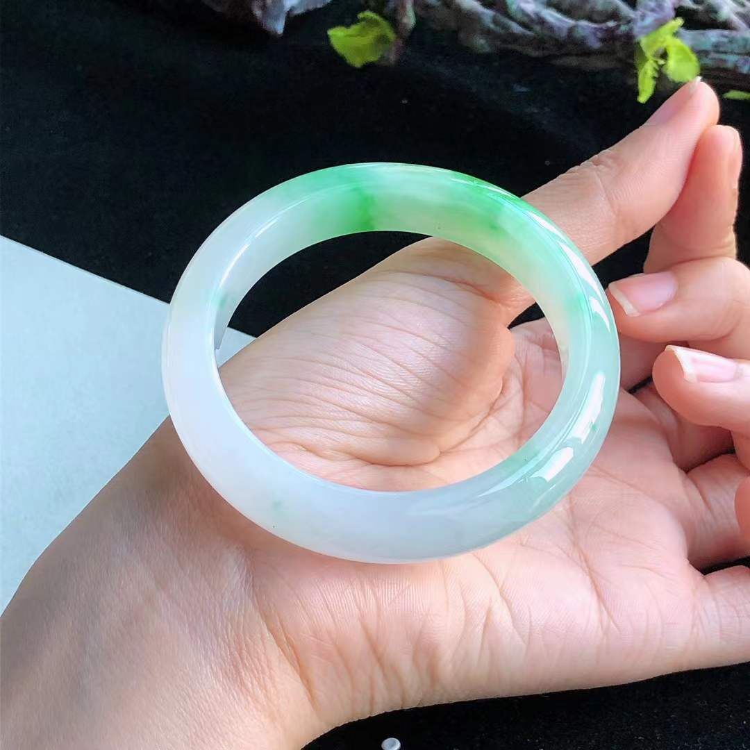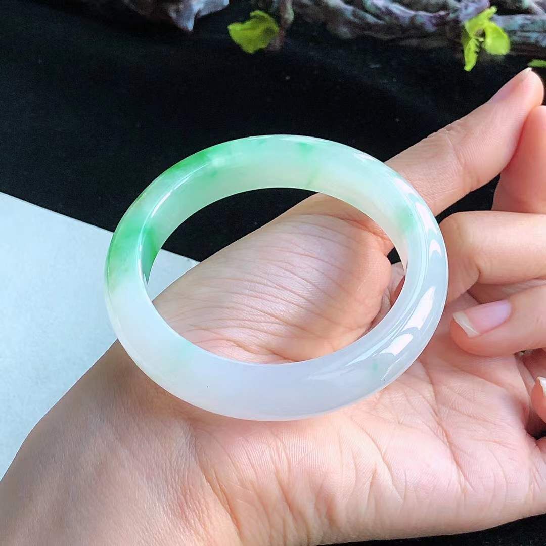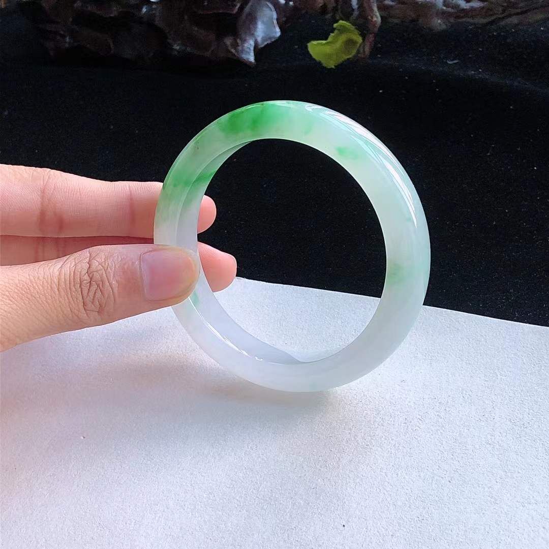 • 冰糯種飄陽綠翡翠正圈手鐲,天然翡翠A玉, 緬甸玉, Jade, Jadeite