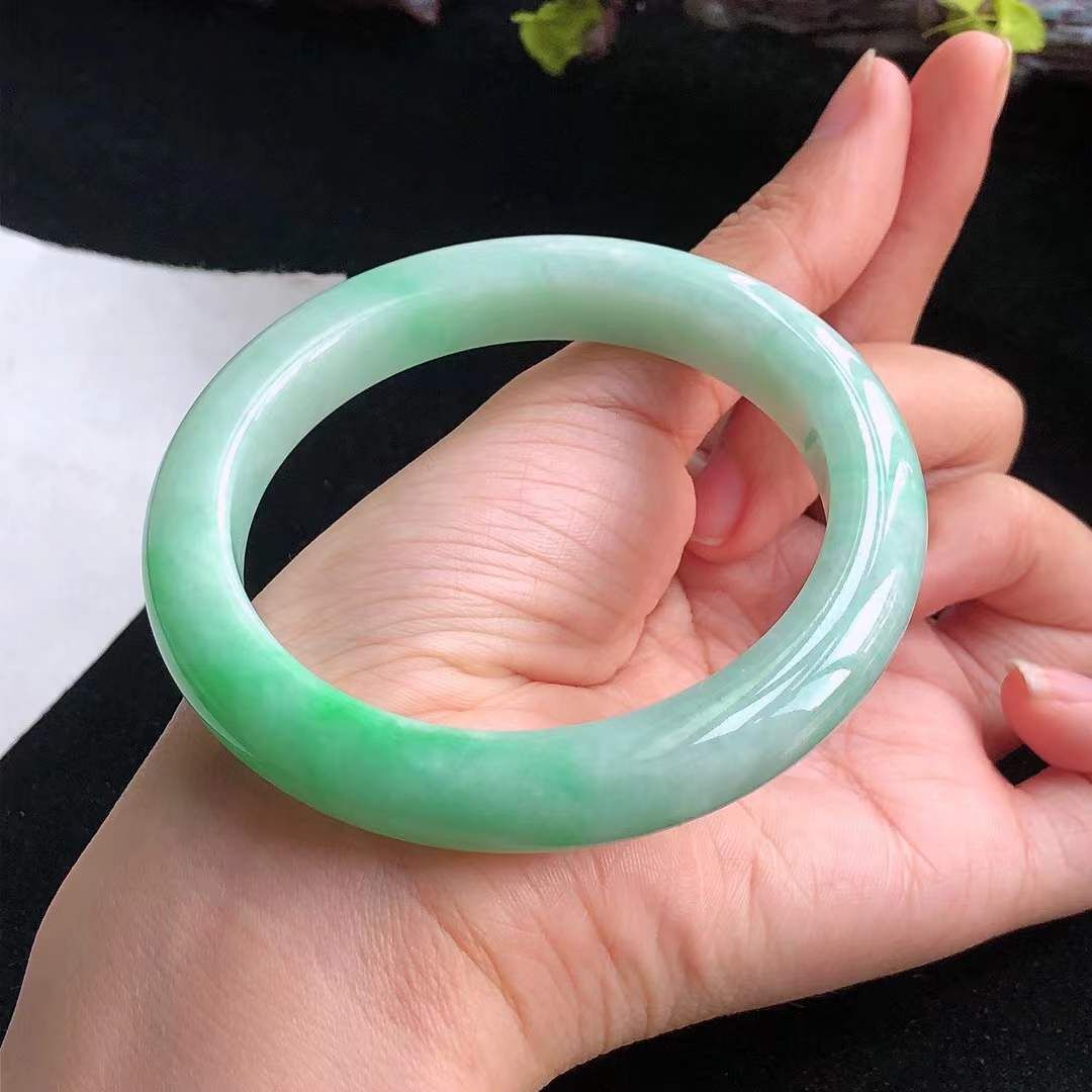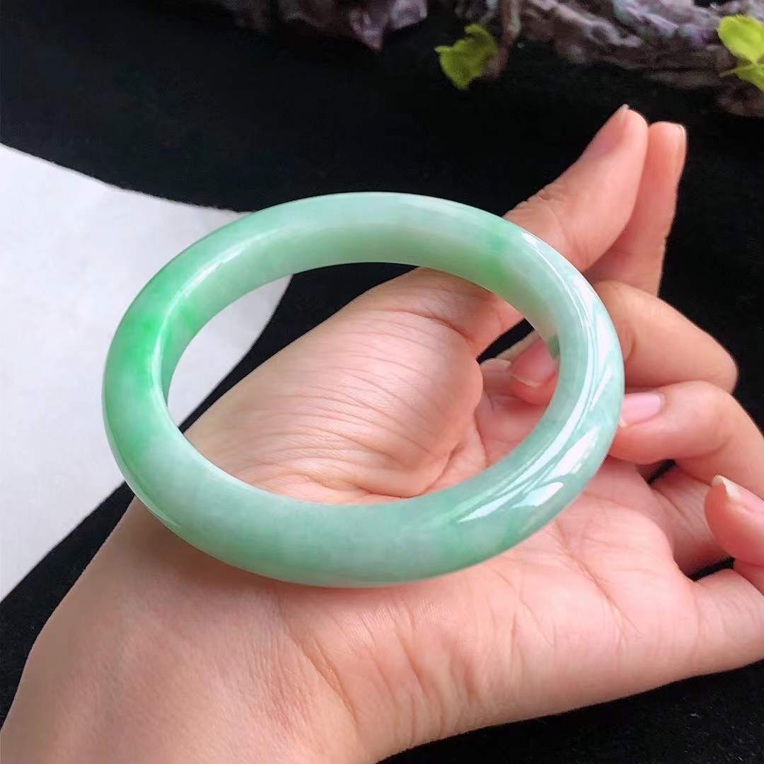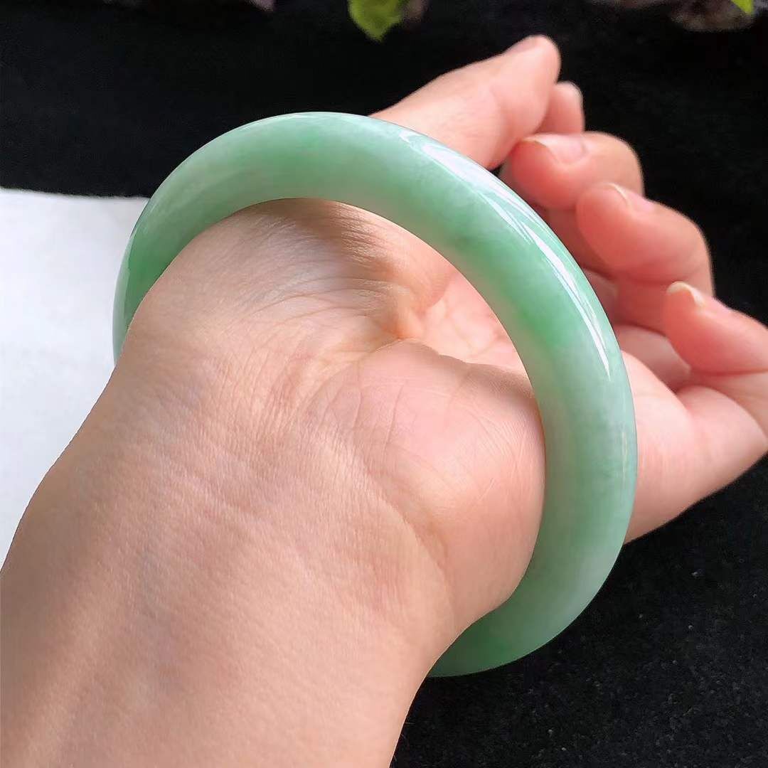 1072638 58mm冰糯種飄果綠翡翠正圈手鐲