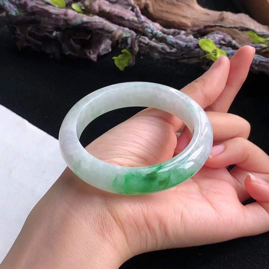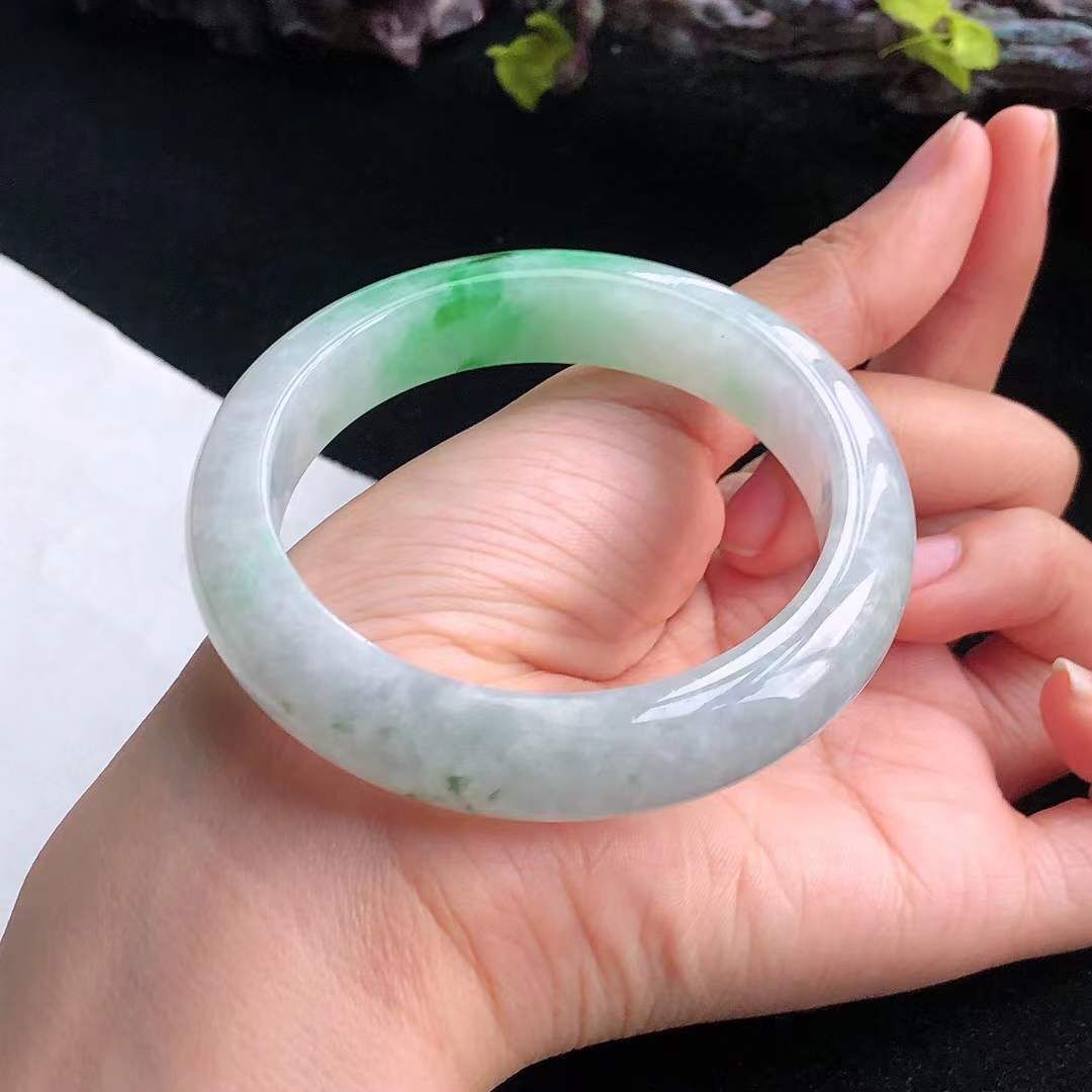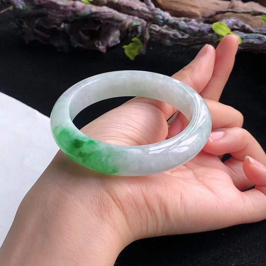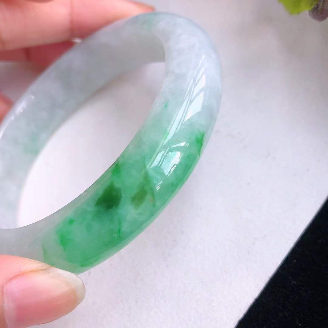 • 冰糯飄辣綠翡翠正圈手鐲,天然翡翠A玉, 緬甸玉, Jade, Jadeite