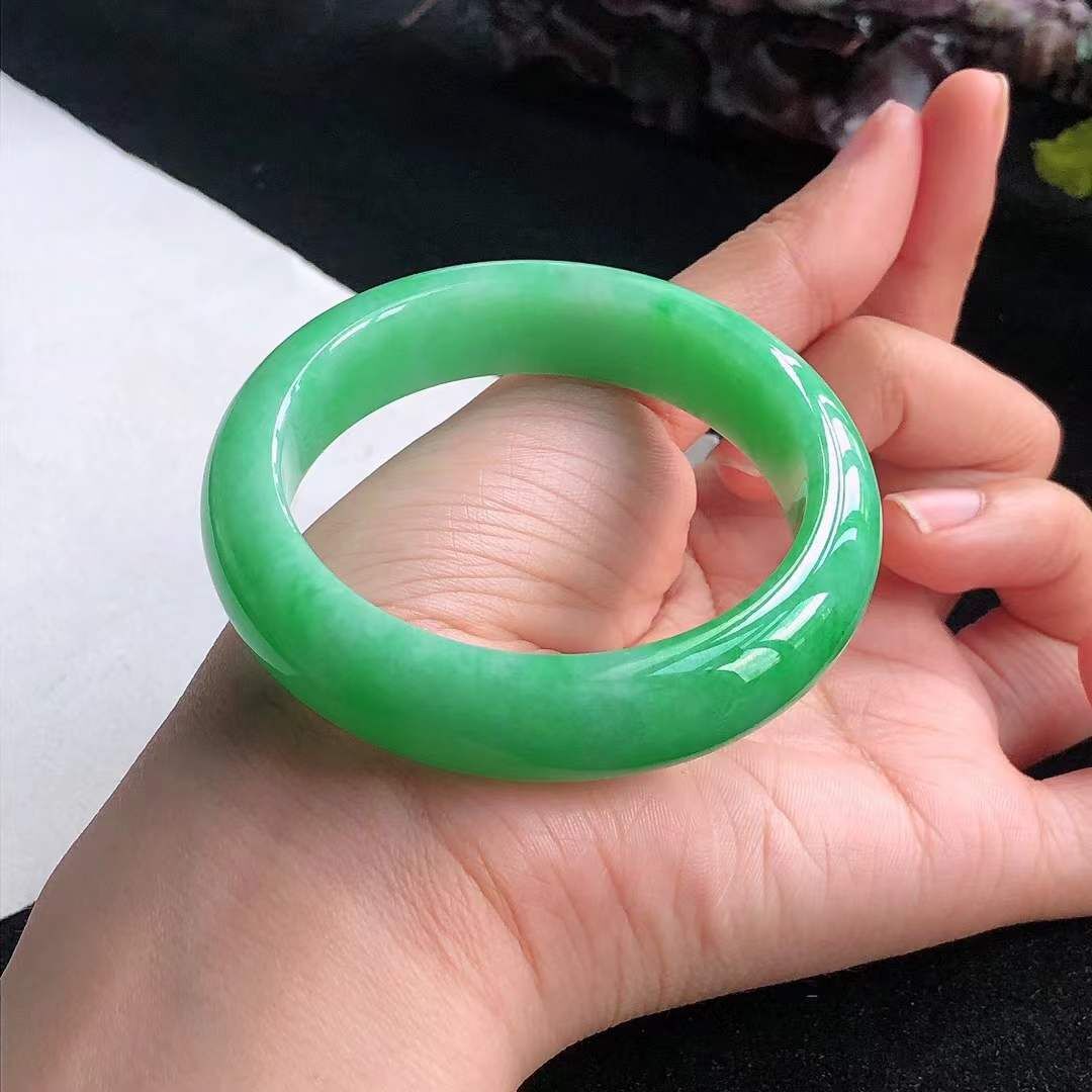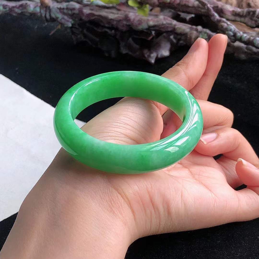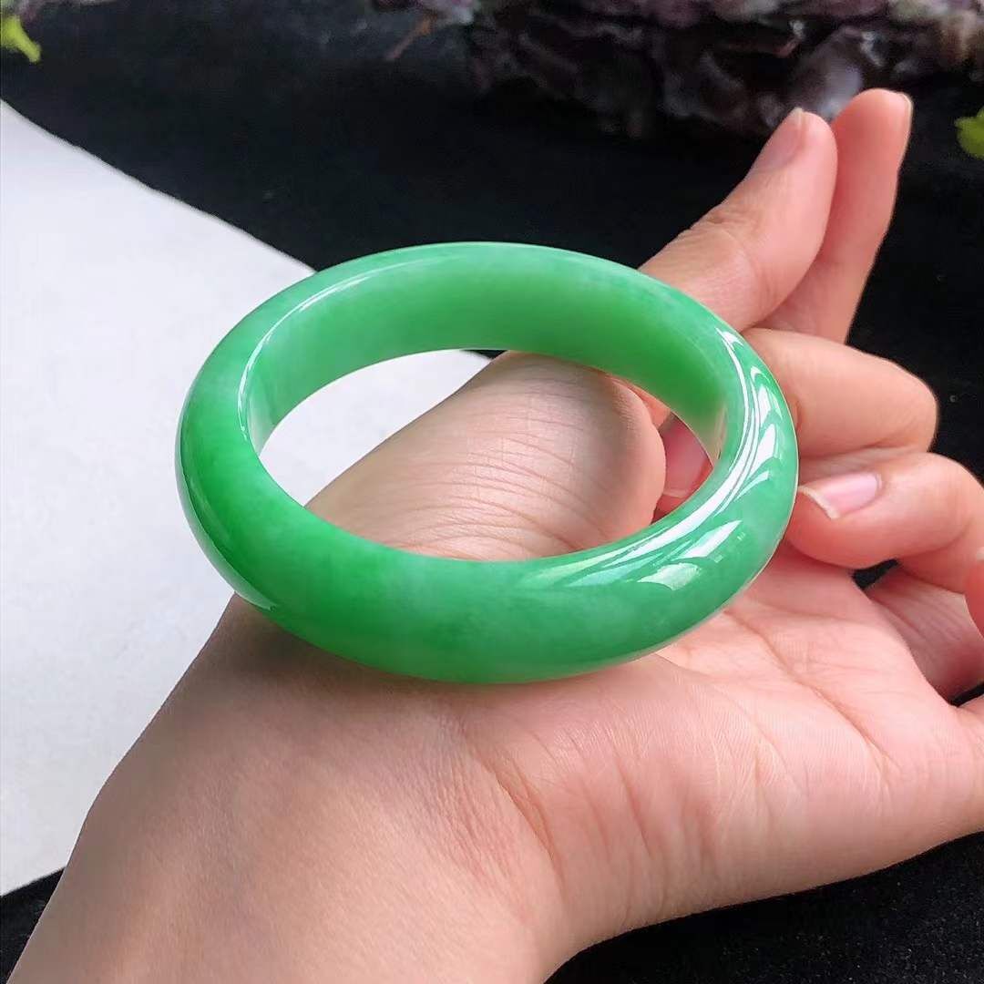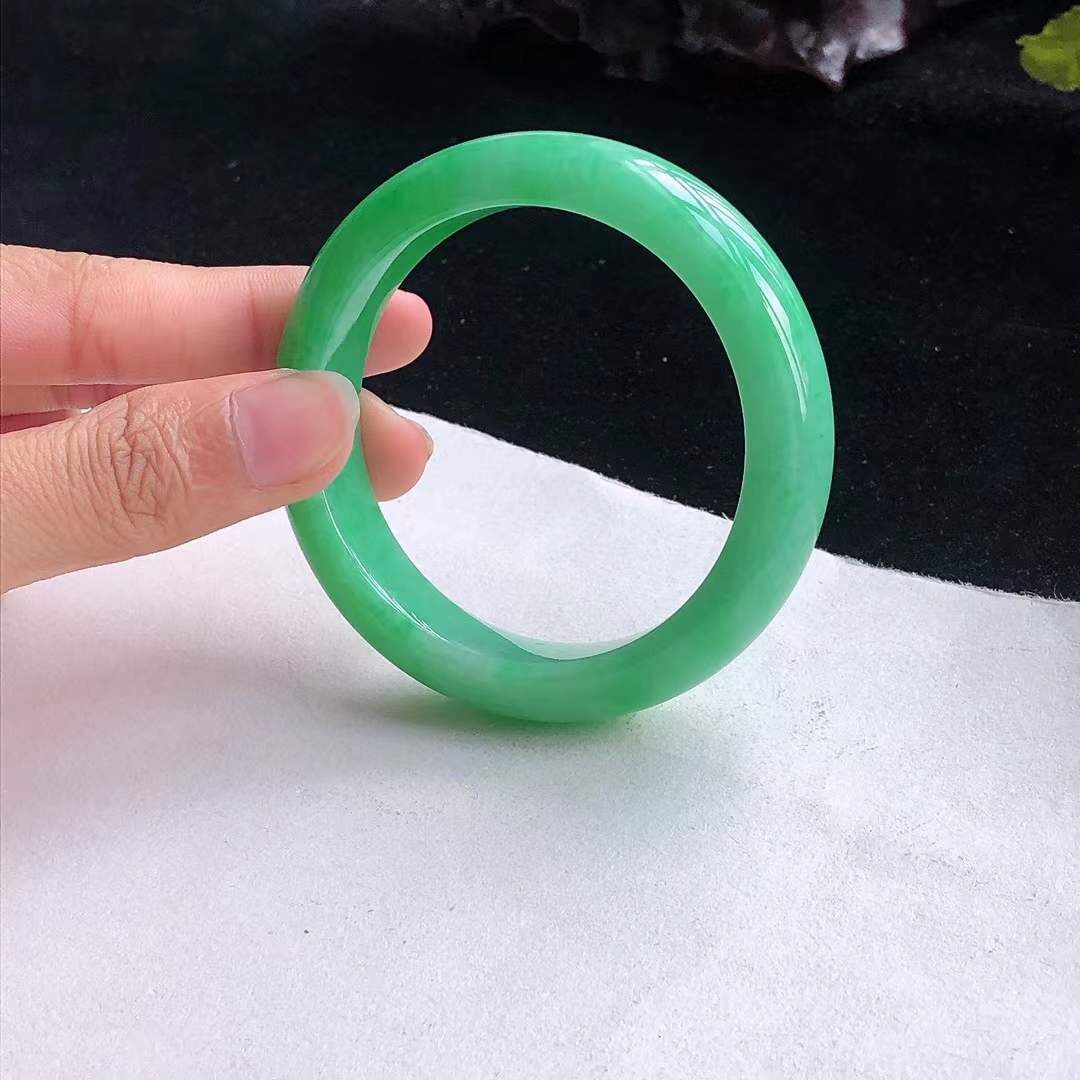 1072642 50mm冰糯飄綠翡翠正圈手鐲