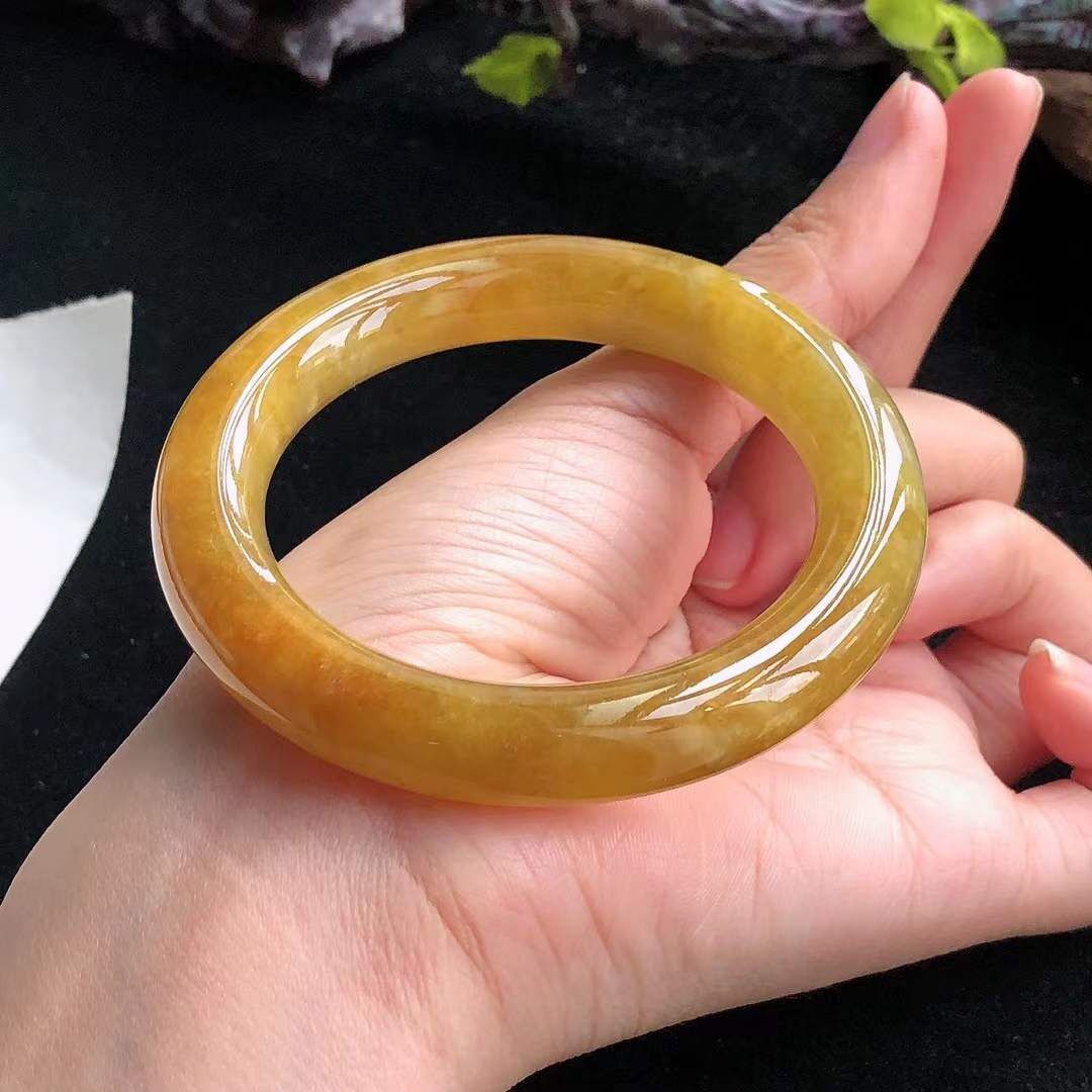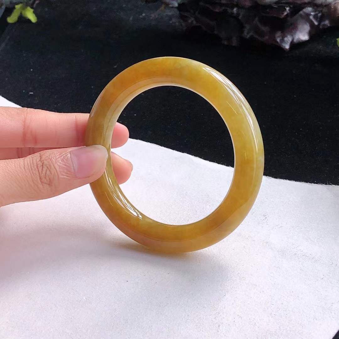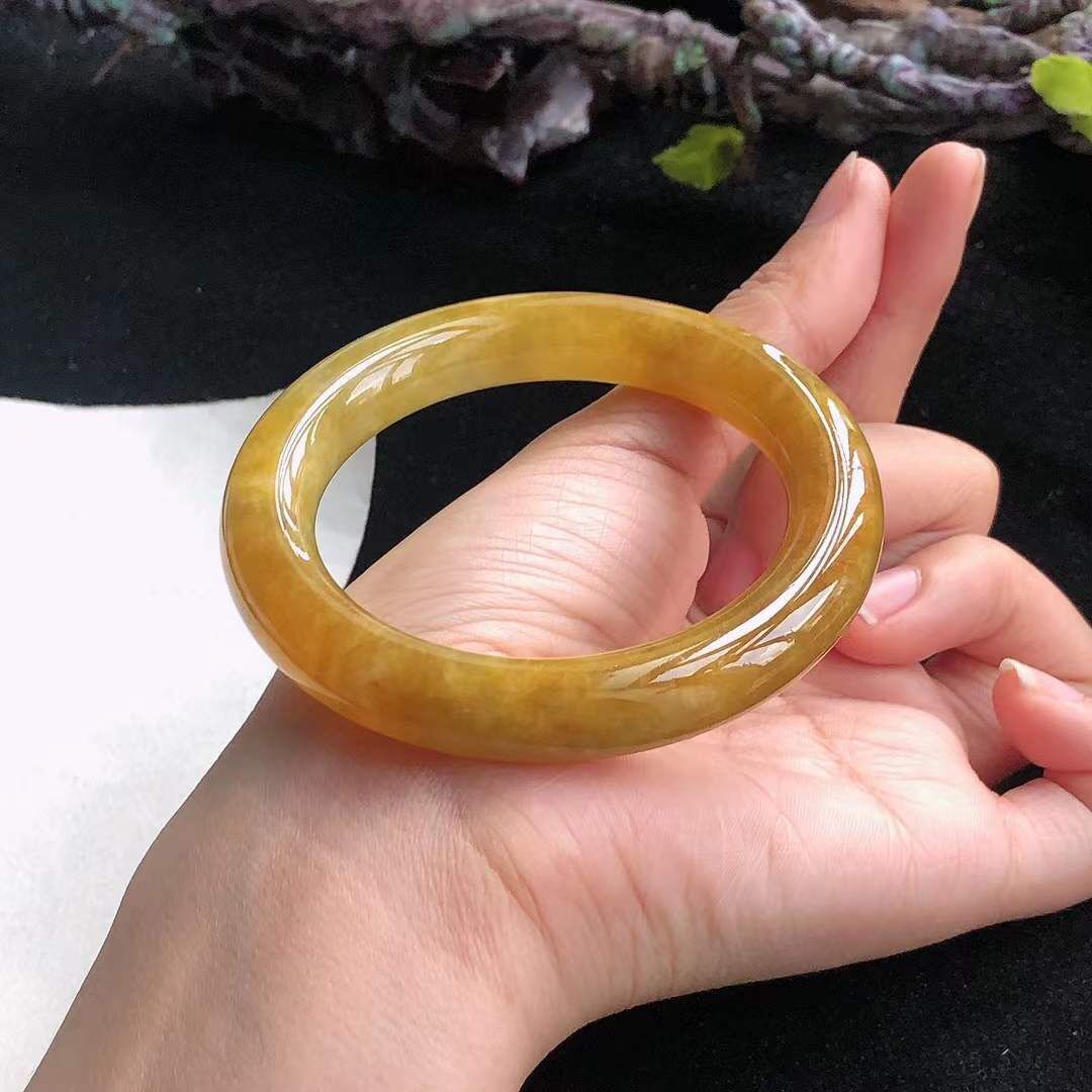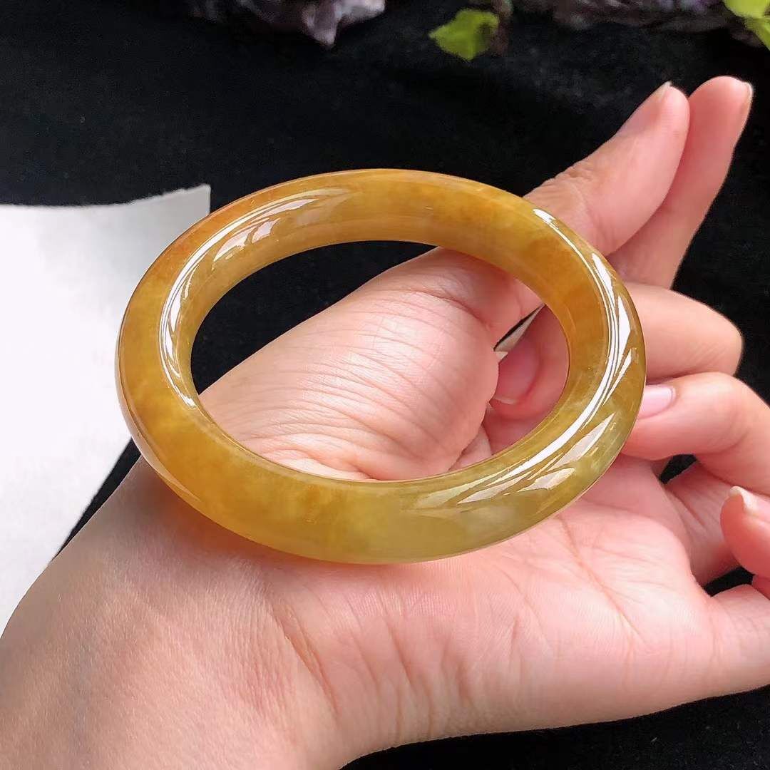 • 冰糯種黃翡翡翠圓條手鐲,天然翡翠A玉, 緬甸玉, Jade, Jadeite
