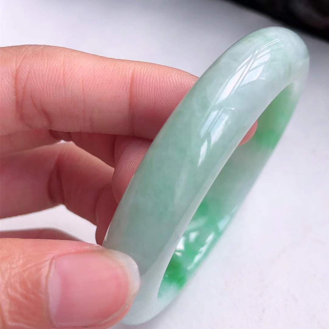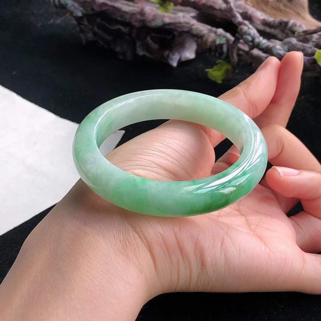 1072646 52mm冰糯種飄綠翡翠正圈手鐲