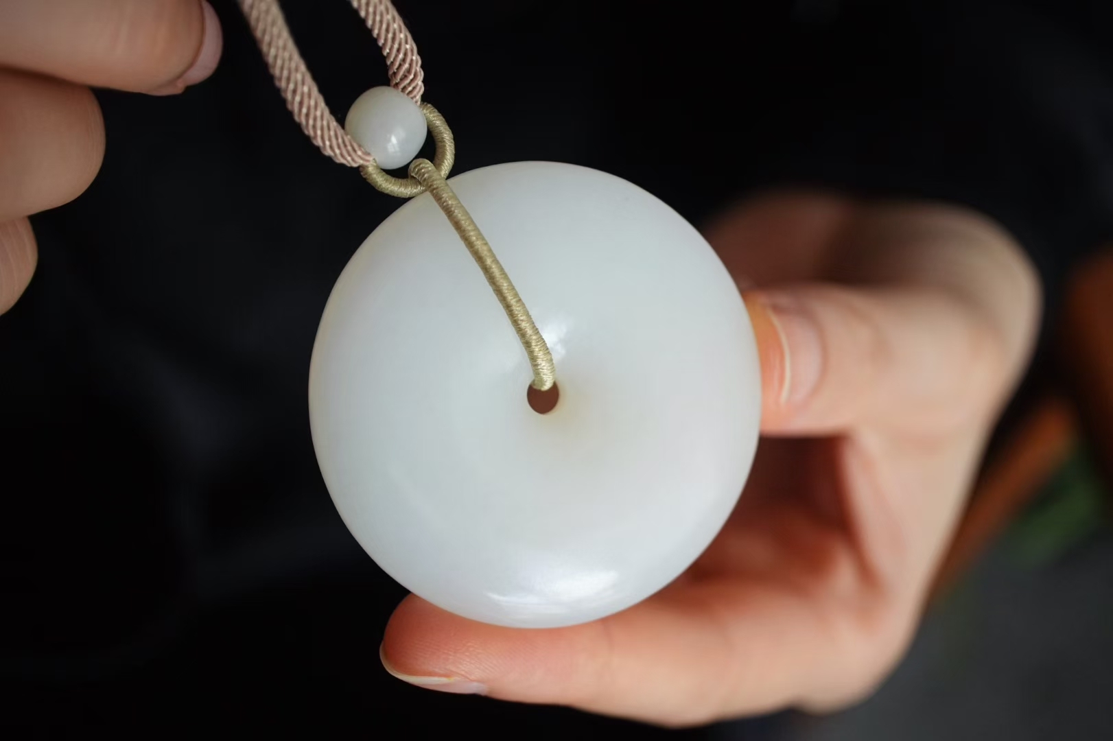 • 和田玉糖白料大平安扣 (48mm直徑),天然和田玉軟玉