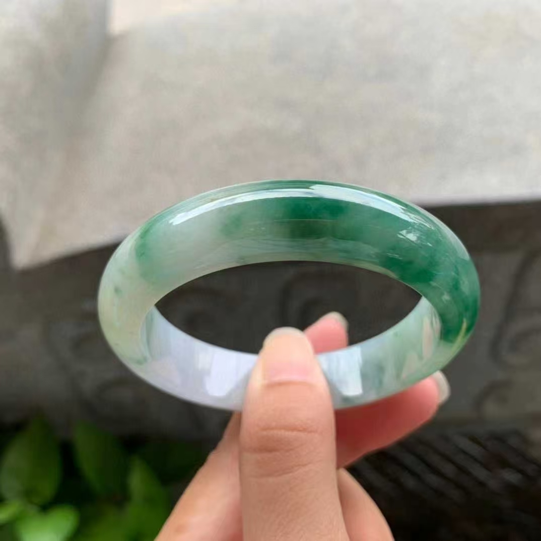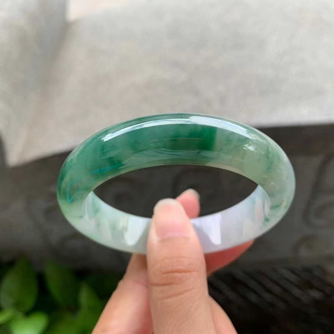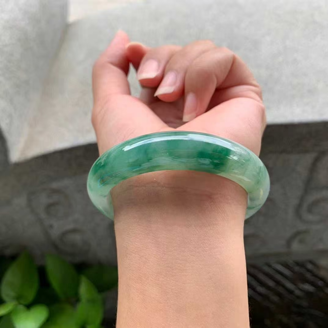 11102337 52.8mm翡翠陽綠飄花正圈手鐲