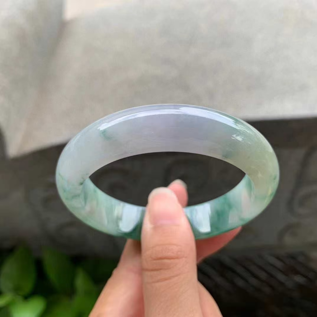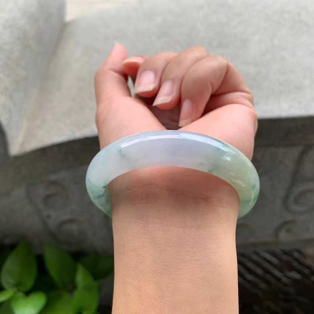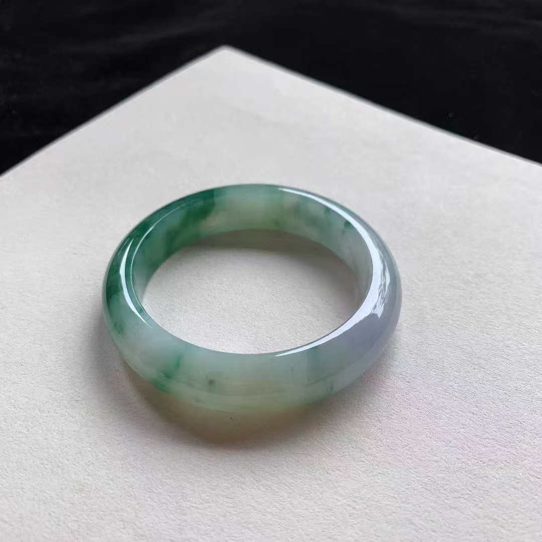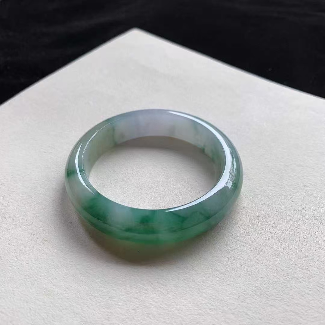 11102337 52.8mm翡翠陽綠飄花正圈手鐲